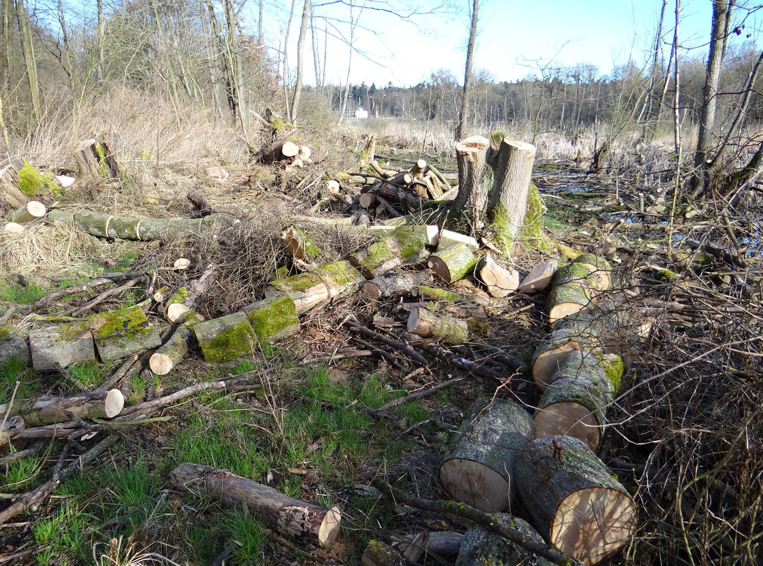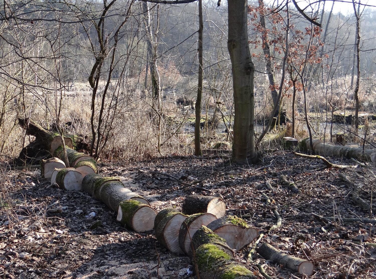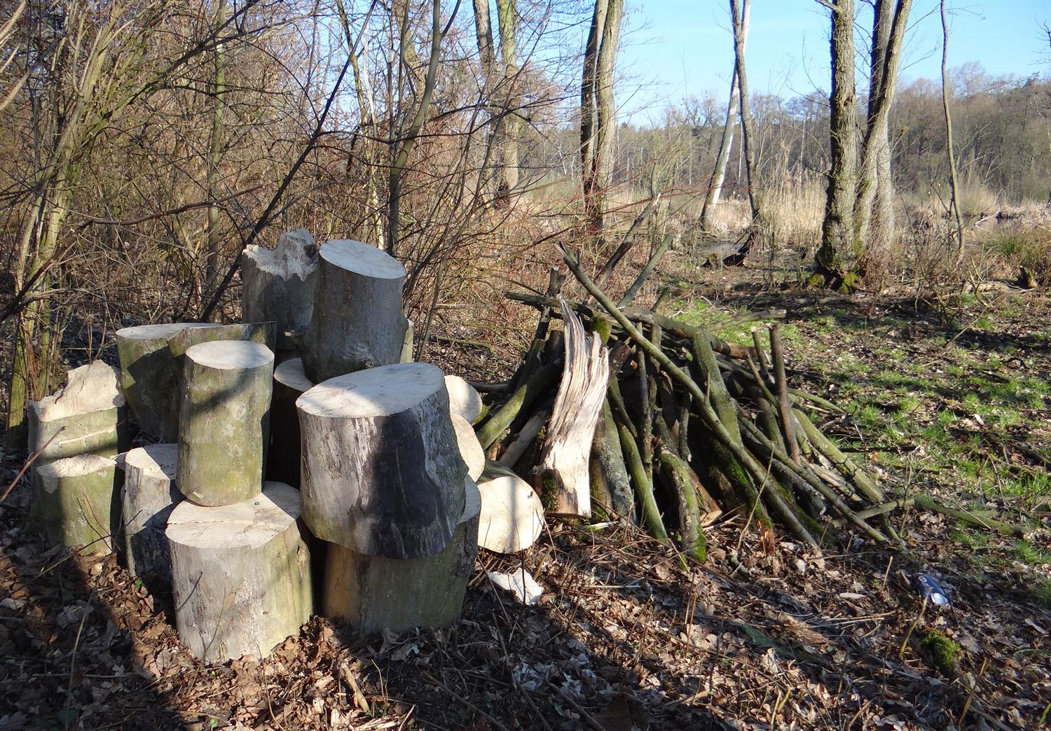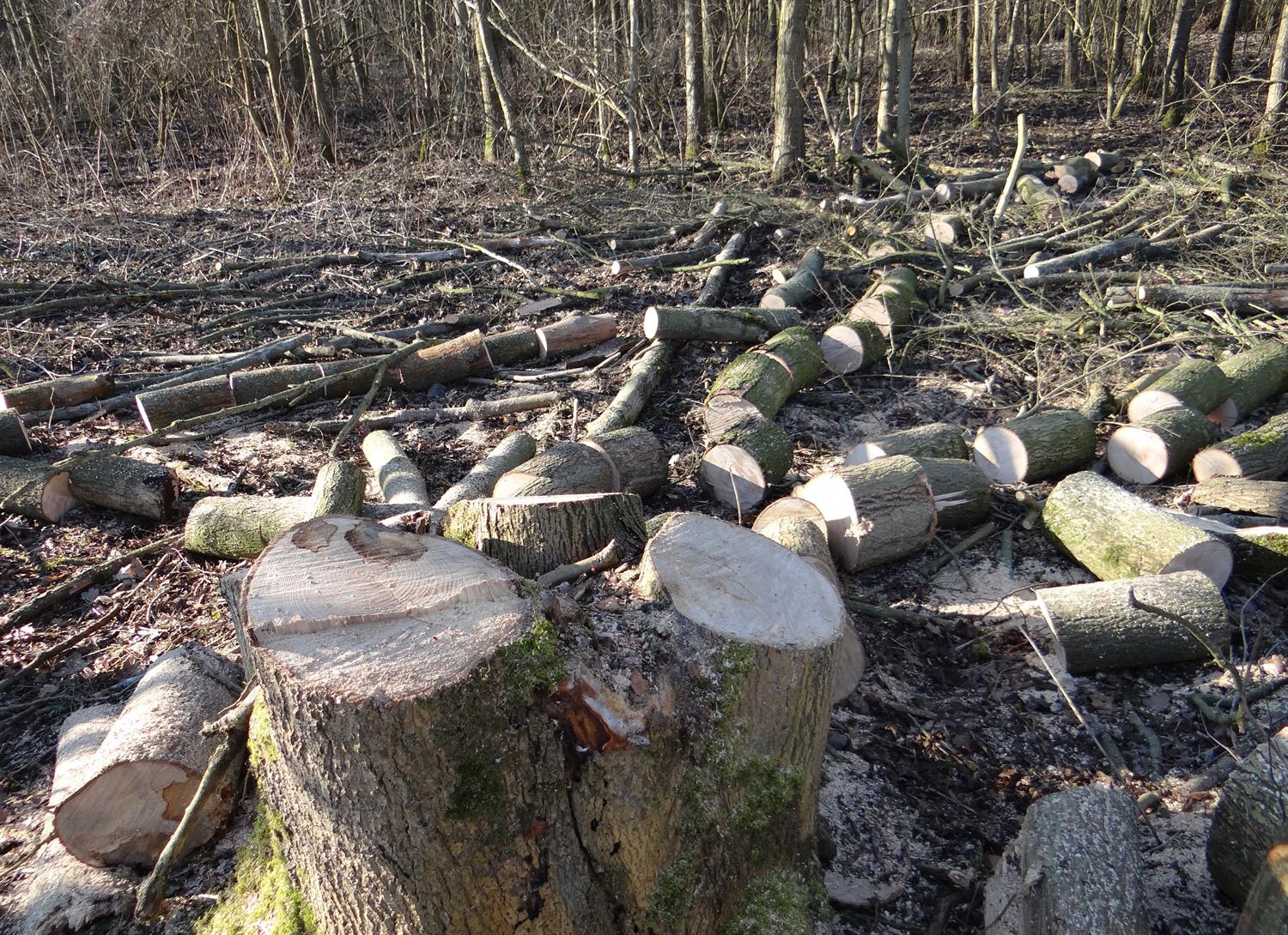 Trwa wycinka , a jednocześnie od roku , w niektórych miejscach od dwóch lat leżą ścięte i nie wywiezione pnie drzew