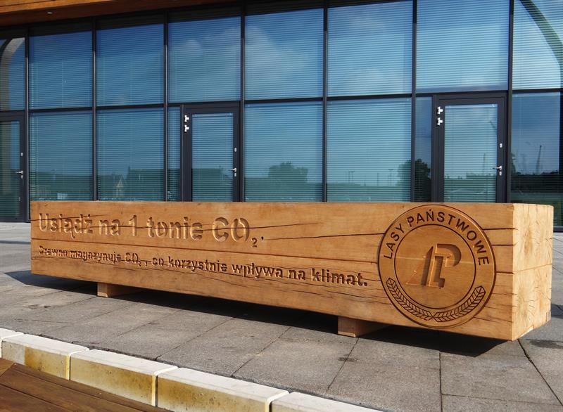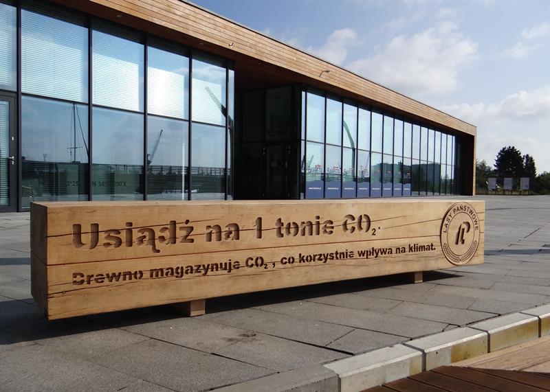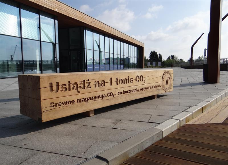 Formalnie to mebel miejski, element małej architektury - o funkcji użytkowej - czyli ławka. Tyle że ze światłym przesłaniem: „Usiądź na 1 tonie CO2. Drewno magazynuje CO2, co korzystnie wpływa na klimat".
