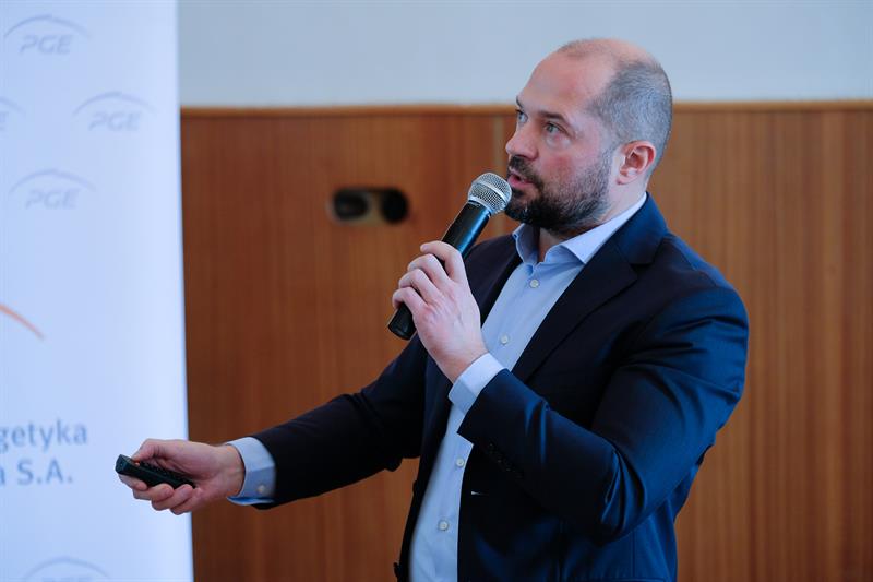 Artur Michniewicz, dyrektor Departamentu Komunikacji PGE Górnictwo i Energetyka Konwencjonalna S.A. tłumaczy co spowodowało awarie w EC Pomorzany. Fot. Dariusz Gorajski