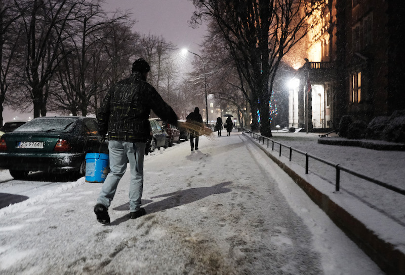 Intensywne opady śniegu w nocy i nad ranem sprawiły, że we wtorek (15 stycznia) od rana ulice Szczecina są zasypane białym puchem. Z trudnymi warunkami na drogach muszą zmagać się kierowcy. Jest sporo stłuczek i awarii samochodów. Na wielu ulicach tworzą się potężne korki. W niektórych dzielnicach nastąpił prawdziwy paraliż komunikacyjny. Trudne warunki panują też na drogach dojazdowych do miasta i w regionie. Według informacji Zarządu Dróg i Transportu Miejskiego w Szczecinie na ulice już przed godziną 6. wyjechało 20 pługosolarek.