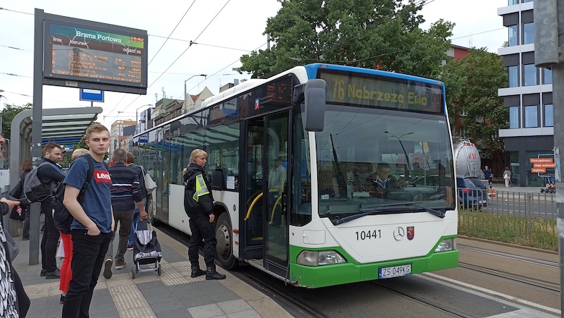 Tramwajowe "dwójki" przez kilkanaście minut kursowały ze Stoczni Szczecińskiej do Bramy Portowej i dalej do Gumieniec, natomiast autobusy w kierunku mostu Długiego korzystamy przed skrętem w lewo z przystanku do prawoskrętu.