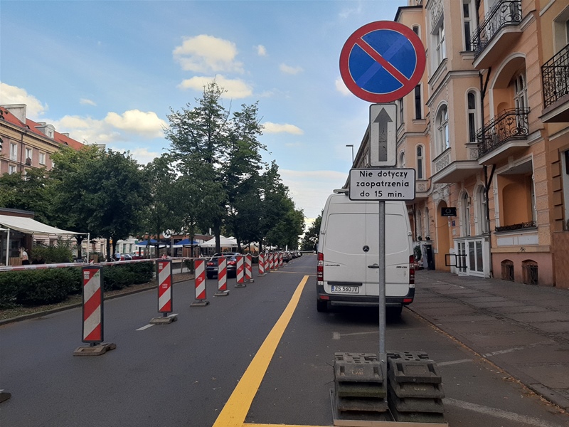 Zgodnie z uchwałą przyjętą pod koniec maja przez szczecińskich radnych, w alei Papieża Jana Pawła II w Szczecinie wprowadzono zmiany w organizacji ruchu. Na jezdniach pojawiło się już nowe oznakowanie poziome, gdyż częściowo zajęty jest pas drogowy. To ukłon w stronę przedsiębiorców, których biznesy ucierpiały podczas pandemii. Ma pomóc gastronomikom w stworzeniu w tym miejscu letnich ogródków dla gości - z zachowaniem obowiązujących restrykcji, m.in. dystansu społecznego.