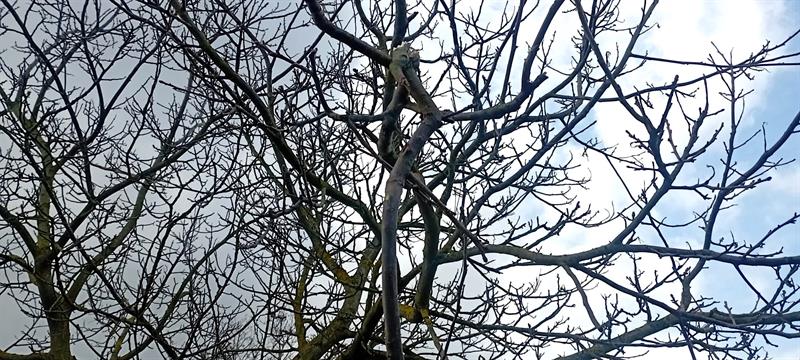 W środowy (12 marca) poranek jechał rowerem wzdłuż ul. Mieszka I, gdy śmieciarka manewrowała przy cmentarnej bramie. Cofając zahaczyła o jeden z konarów drzewa. Nadłamała go i odjechała.
