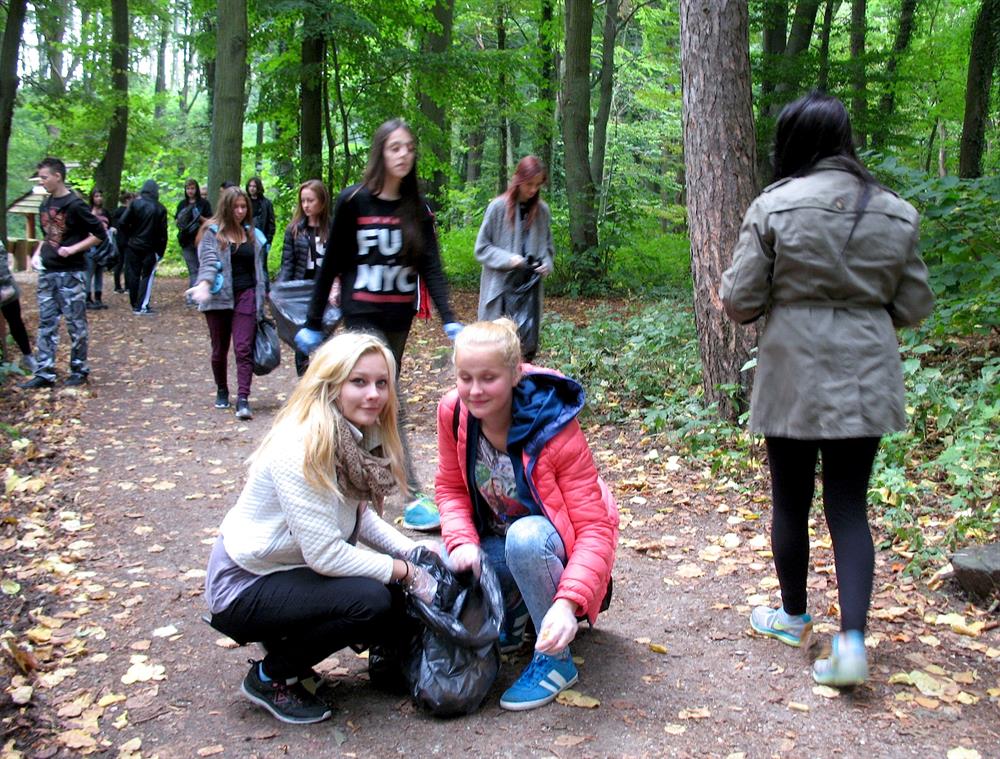 Uczniowie chętnie biorą udział w usuwaniu śmieci z zielonych traktów wokół Szmaragdowego także dlatego, że w „pięknych okolicznościach przyrody" czas lekcji płynie im - jak mówią - fajniej.