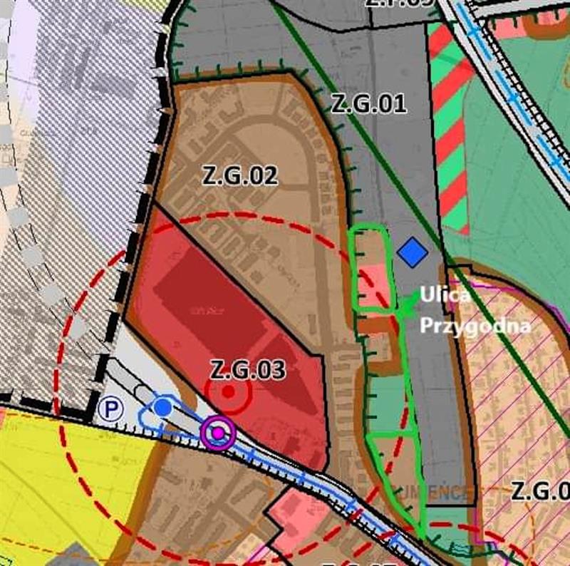 - W jednostce planistycznej Z.G.02, do której przynależy ulica Przygodna, w polityce przestrzennej wskazuje się na wyposażenie obszaru w niezbędne elementy funkcjonalne i zieleń ogólnodostępną. Jednak mapa tego terenu (patrz mapa - przyp. an) wskazuje na dalsze przekształcanie terenów zielonych leżących przy ul. Przygodnej, w tereny zabudowy mieszkaniowej i usług z niewielkim tylko fragmentem pozostawionym jako zieleń, który nie jest wystarczający. Przekształcenie terenów zieleni nieurządzonej wzdłuż ul. Przygodnej na osiedla mieszkaniowe, pogorszy znacząco jakość życia mieszkańców i pogłębi zagrożenia na jakie wskazują uwarunkowania związane z intensywną zabudowę mieszkaniową wielorodzinną.