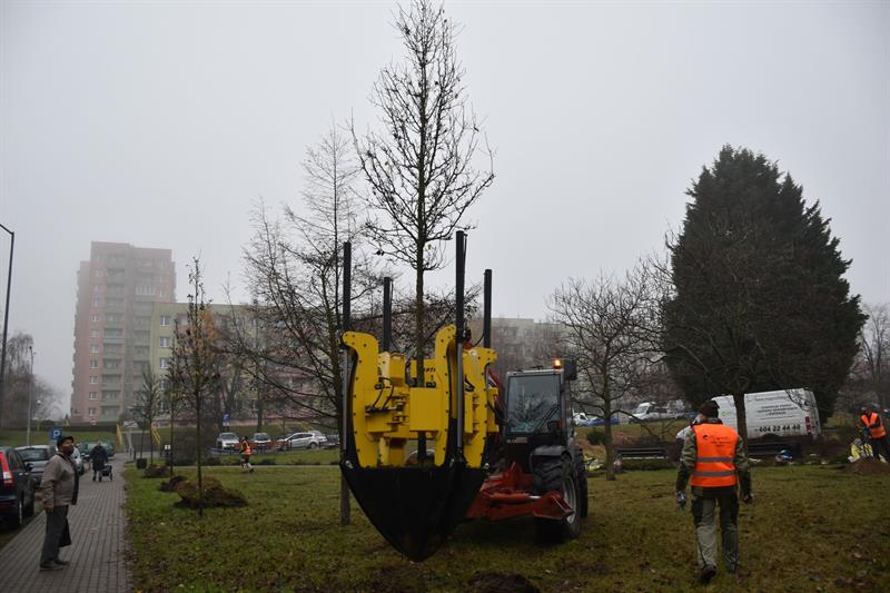 Drzewa ze skweru przy ul. Księżnej Zofii wykopane zostało z początkiem tego tygodnia przy użyciu specjalistycznej przesadzarki i znalazło nowe miejsca, w których będą teraz rosnąć w rejonie placu przy ul. Księżnej Zofii na osiedlu Książąt Pomorskich. W sumie sztuk sześć. Ustąpiły przestrzeni ludziom i ich samochodom. Na placu z zieleńcem, gdzie dotąd bowiem rosły, postanowiono urządzić nowe miejsca parkingowe.