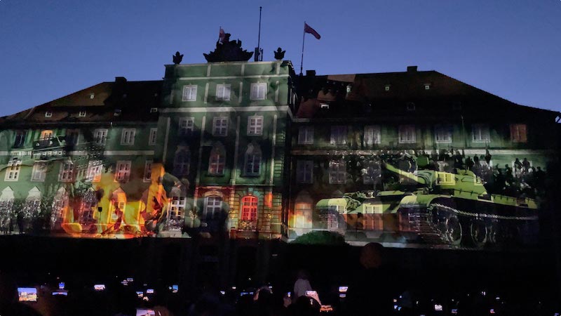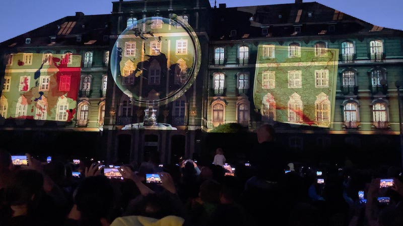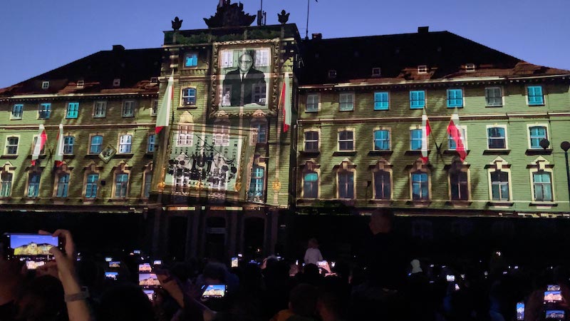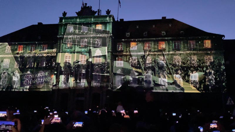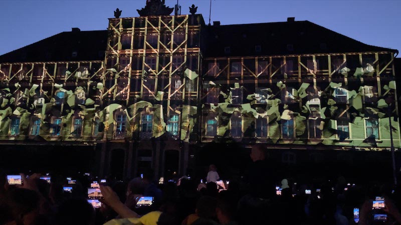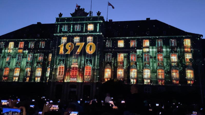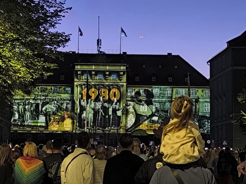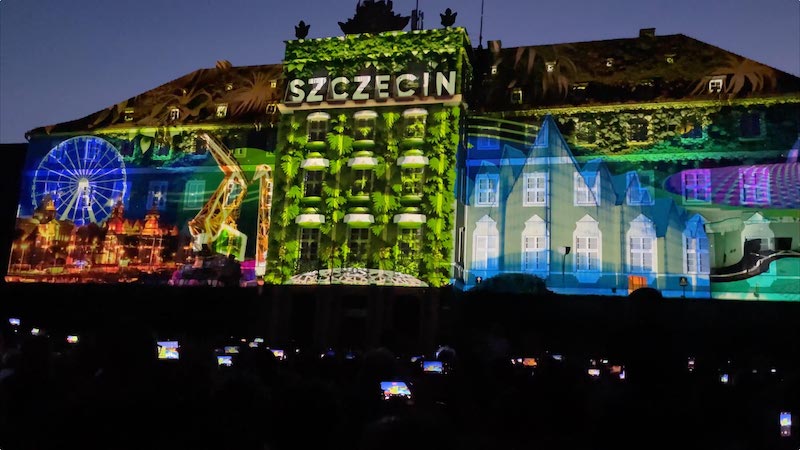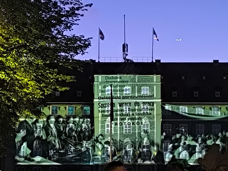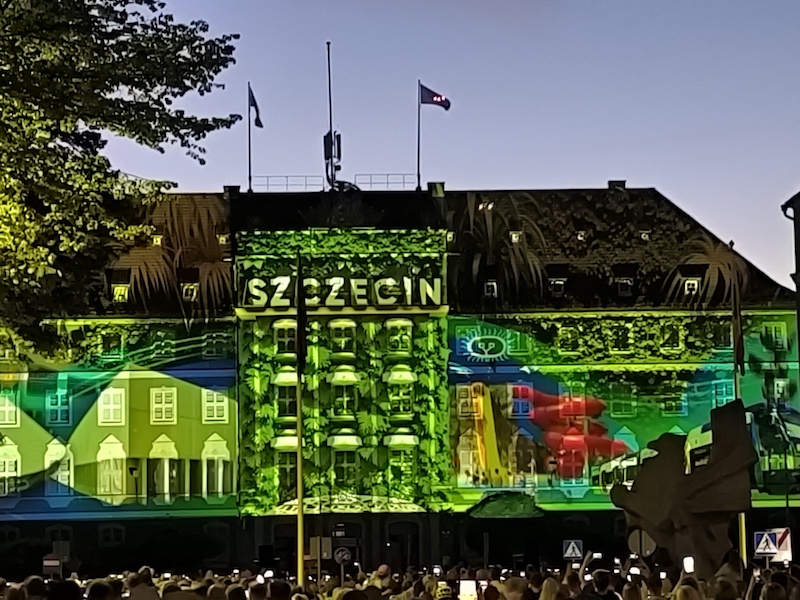 Spora grupa mieszkańców przyszła wieczorem pod szczeciński magistrat, aby zobaczyć niezwykłe widowisko pt. „Mapping 80 lat Szczecina”. Była to opowieść z wykorzystaniem światła, dźwięku i obrazu o mieście, które przez ostatnie dziesięciolecia zmieniło się nie do poznania. Wydarzenie odbyło się na zakończenie obchodów 80-lecia polskiego Szczecina.