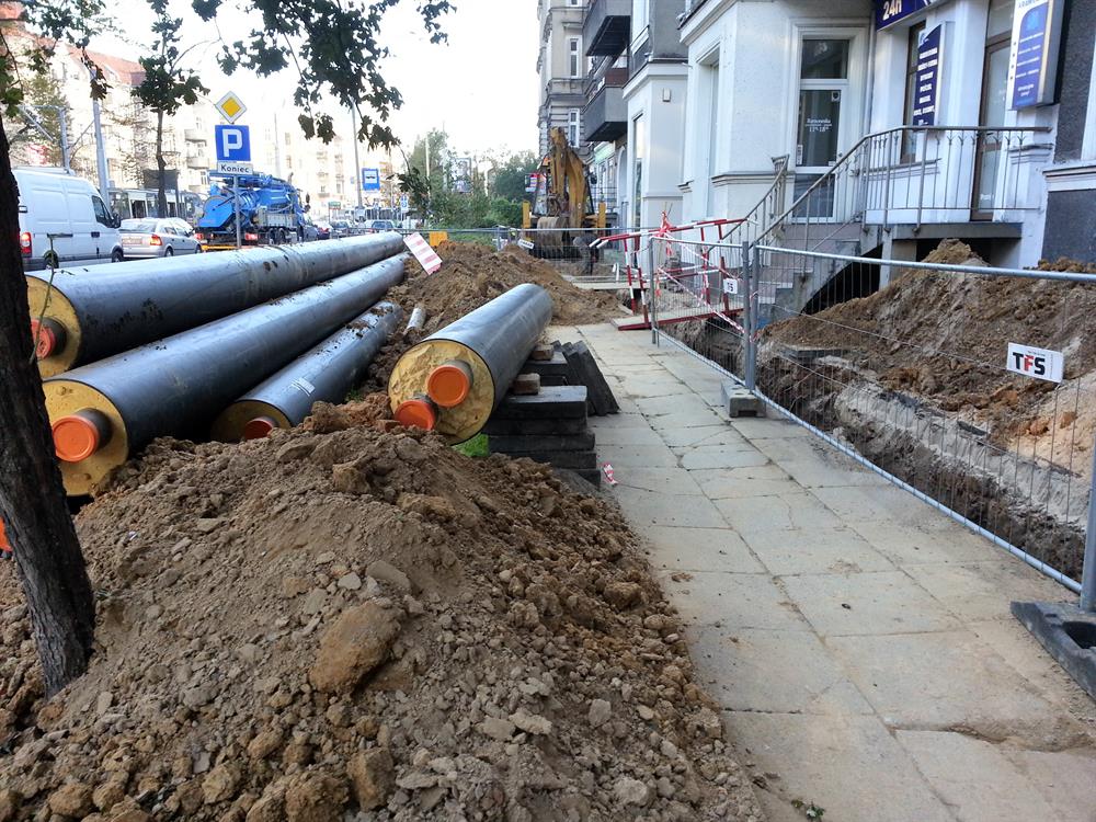 Wykopy i roboty w związku z wymianą na nową sieci grzewczej w al. Piastów na odcinku między ulicami Jagiellońską i Ściegiennego w Szczecinie. To kolejna część inwestycji Szczecińskiej Energetyki Cieplnej w modernizację sieci przesyłowej w śródmieściu. Na zlecenie SEC prace w tym miejscu wykonuje spółka Gazmech i ma je zakończyć do połowy października. Przy okazji wymiany rur na robotników i tutaj czekała podziemna niespodzianka - studzienka teletechniczna, należąca do jednej z firm telekomunikacyjnych, której być nie powinno. ©℗