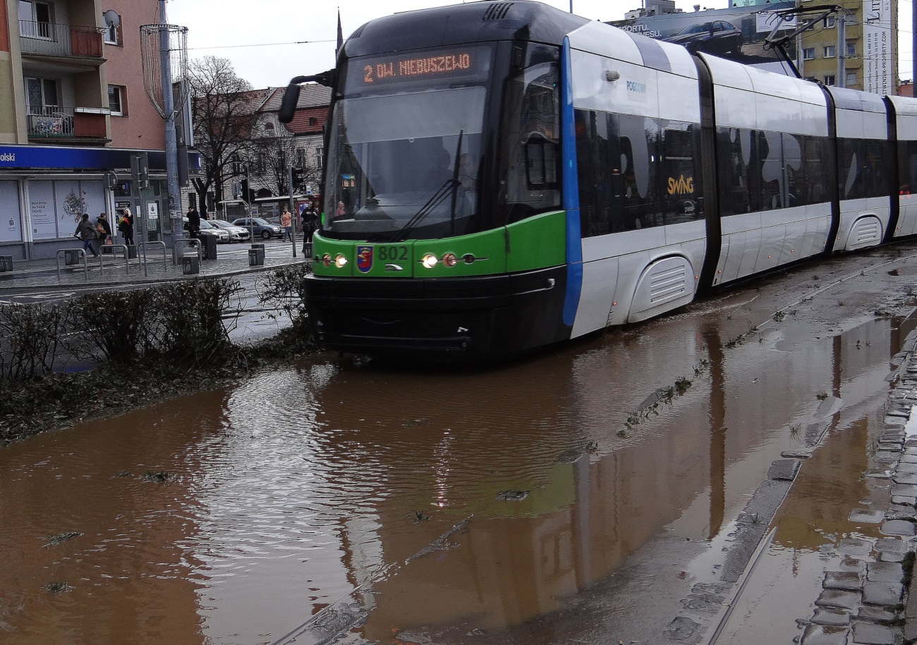 Na zdjęciu: Tak po każdym deszczu wygląda torowisko w al. Wyzwolenia w Szczecinie.