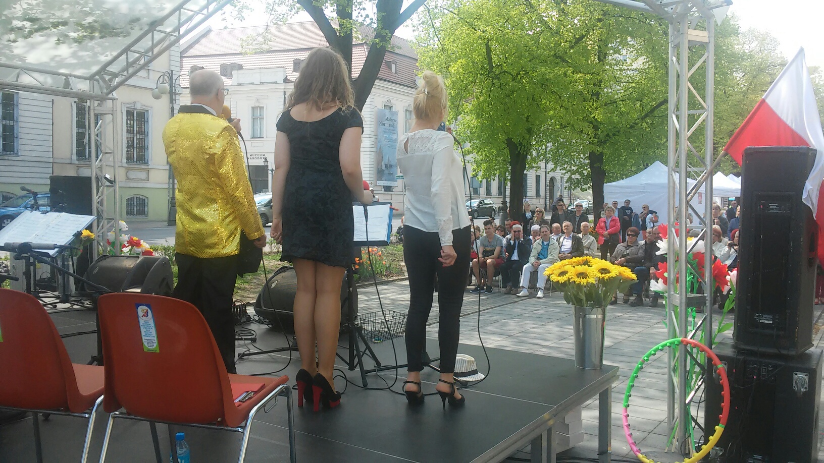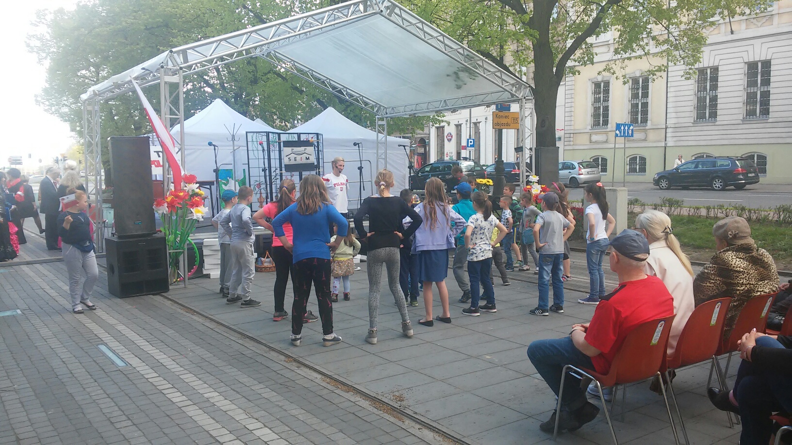 Występy estradowe i zabawy dla najmłodszych uświetniły 225 rocznicę uchwalenia Konstytucji 3 maja. Przy stoliku można było się nauczyć jak zrobić kokardę. Jednak największe zainteresowanie wzbudzali chyba żołnierze w mundurach państw ościennych, które w przyszłości miały dokonać rozbioru Polski.