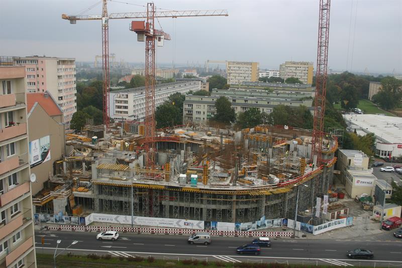 Mnie się tam wszystko podoba. Dobra organizacja pracy, o 0705 walą już młotkami aż do 1755.A i języka całkiem obcego można się nauczyć, bo nie żałują sobie komunikacji werbalnej, a prostej... A jak taka betoniareczka podjedzie i następne stoją w kolejce na Odzieżowej, serce rośnie niczym ten Tower... Bo i przejechać trudno autkiem własnym. To i zdrowo, bo piechotą... To czego się czepiacie? Że Hanka Towar słonko zasłoni ten dom starców, jeden i czwarty? Się zrobi klubik dla dziadków, niech się cieszą... Taki z h... Hot dogami...