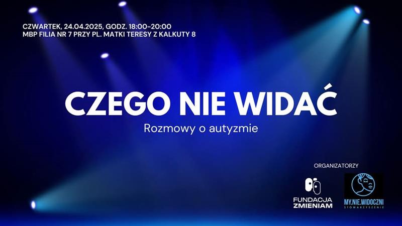 Autyzmu często nie widać na pierwszy rzut oka. A jednak jest obecny – w codzienności dzieci i dorosłych, w wyzwaniach ich rodzin, w relacjach społecznych, w braku zrozumienia i empatii. Kwiecień to Miesiąc Świadomości Autyzmu. Z tej okazji Fundacja Zmieniam i Stowarzyszenie My.Niewidoczni zapraszają na publiczny dialog „czego nie widać – rozmowy o autyzmie”.