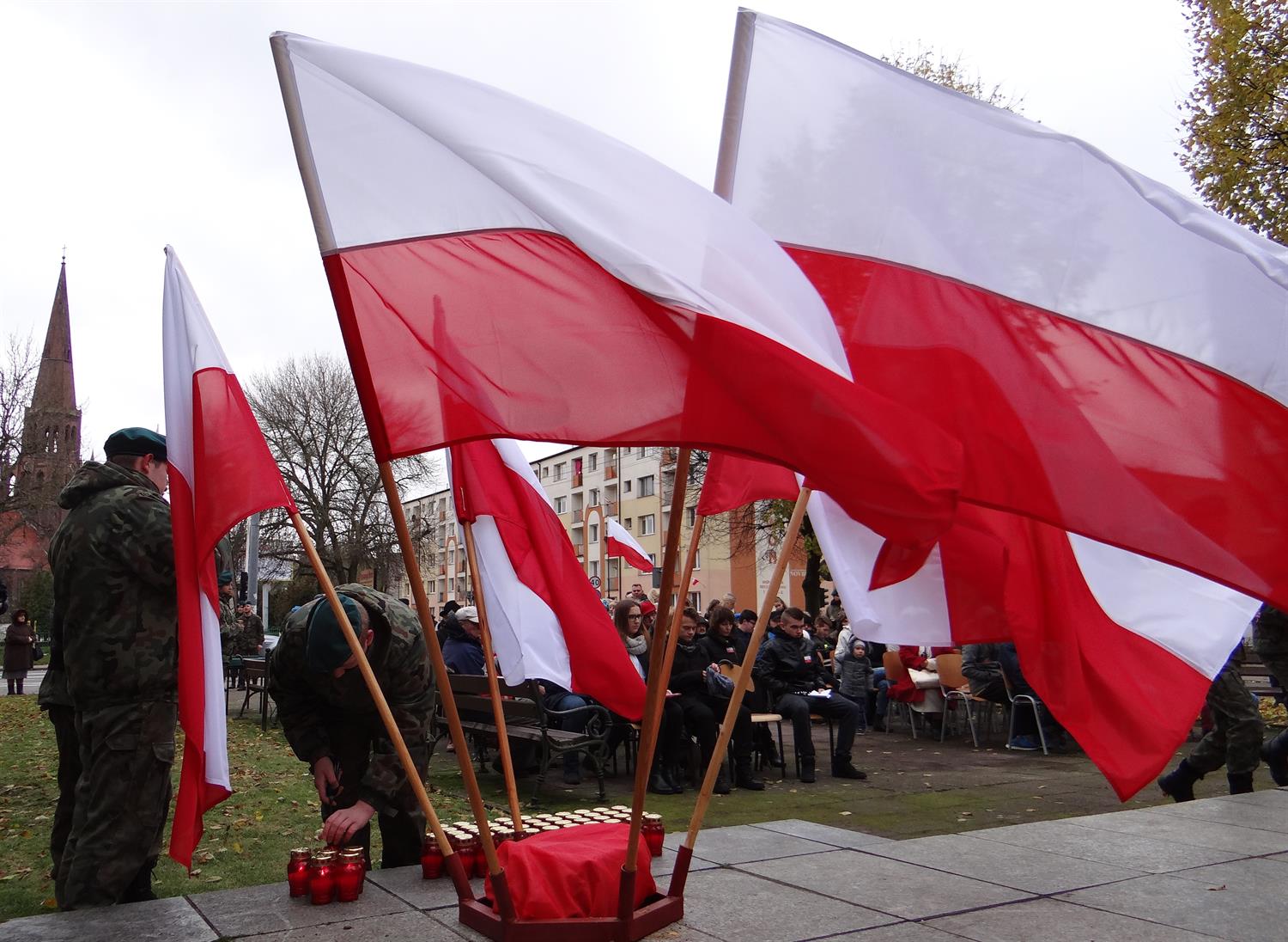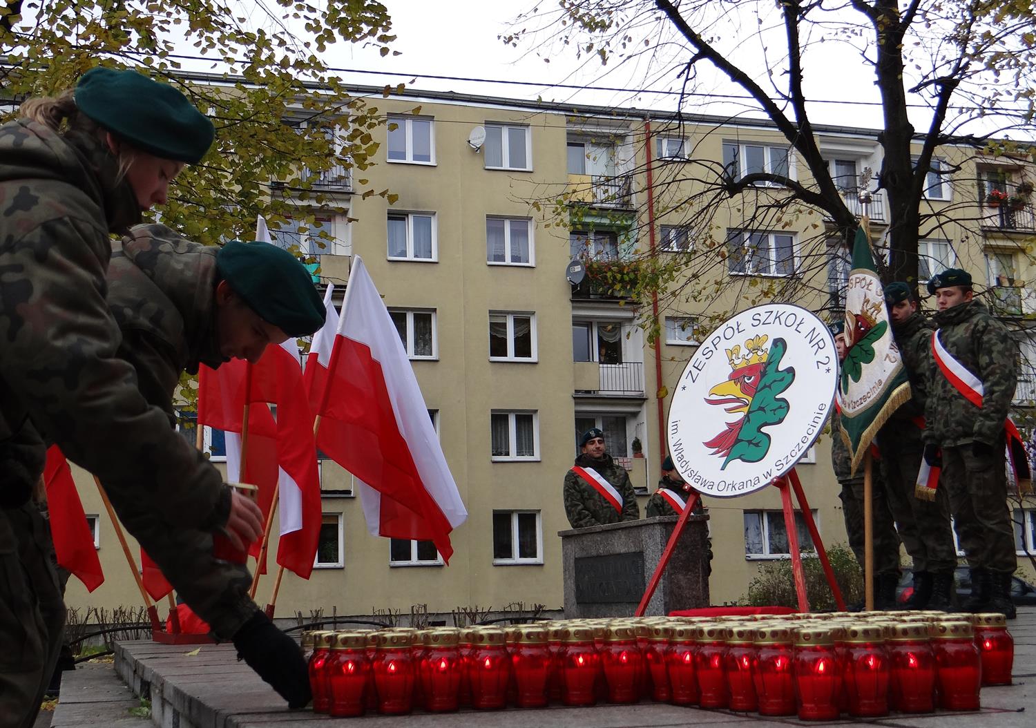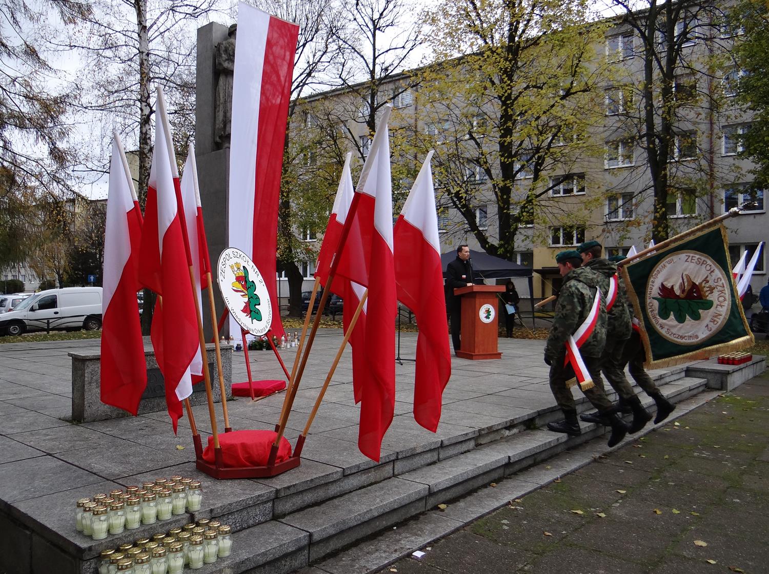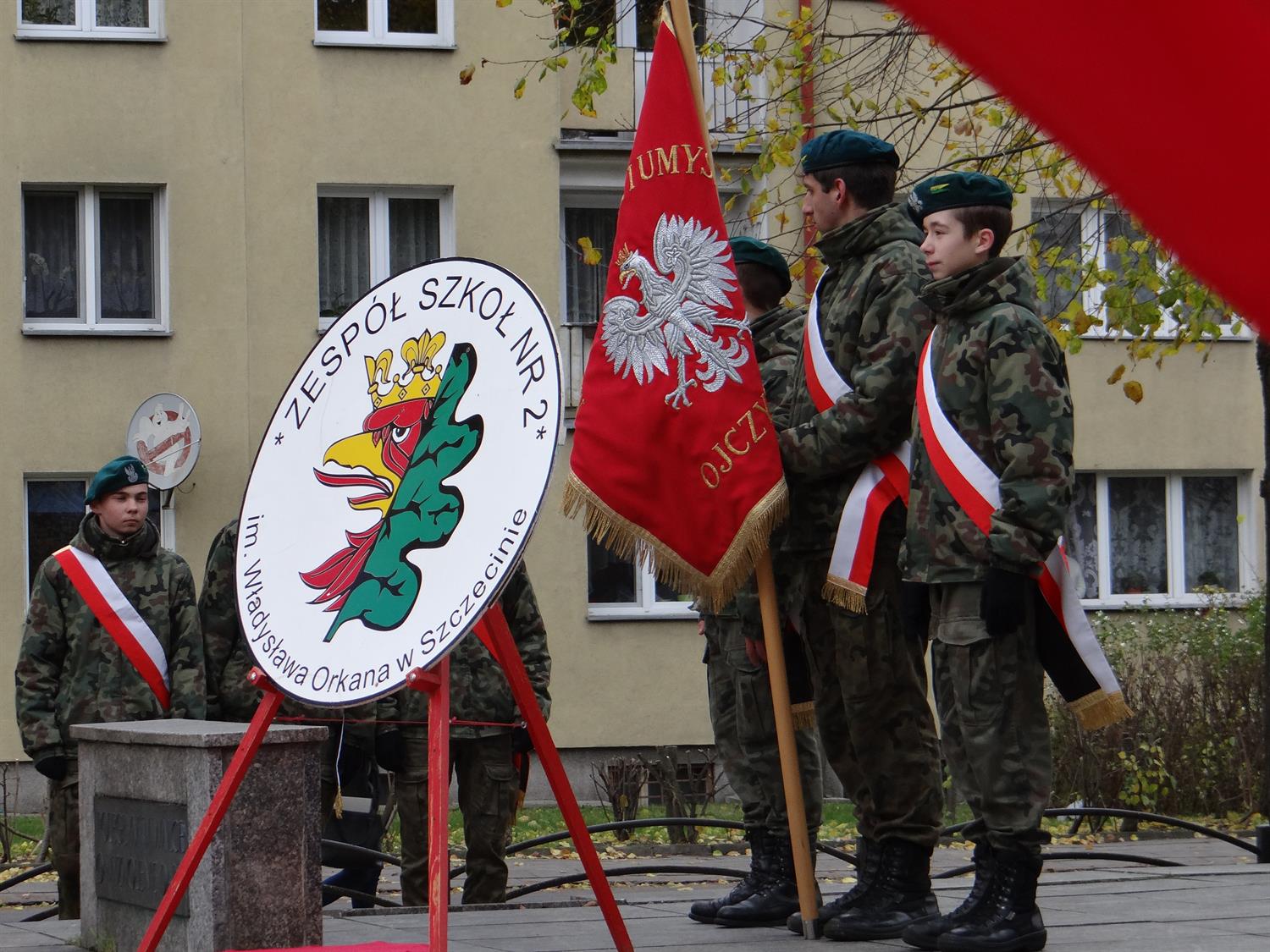 Przed pomnikiem „Poległym w Walkach o wyzwolenie Dąbia” na placu u zbiegu ulic Emilii Gierczak i Józefa Mianowskiego w Dąbiu w sobotę odbyły się uroczyste obchody Narodowego Święta Niepodległości. Poprzedziły je nabożeństwo w kościele Wniebowzięcia Najświętszej Marii Panny, koncert orkiestry dąbskiego Miejskiego Ośrodka Kultury i przemarsz mieszkańców na spotkanie w asyście uczniów klas mundurowych Zespołu Szkół nr 2 im. Władysława Orkana.