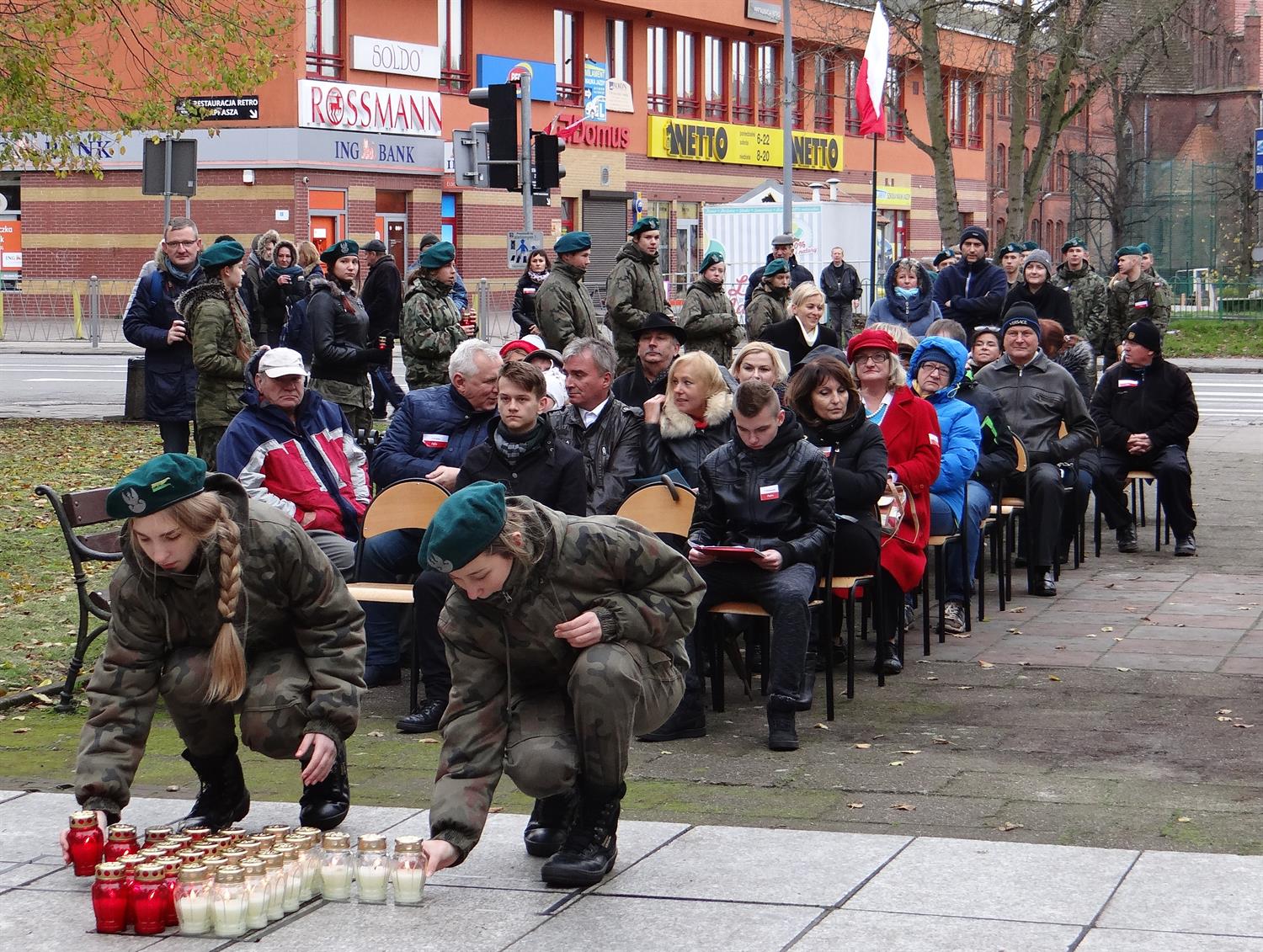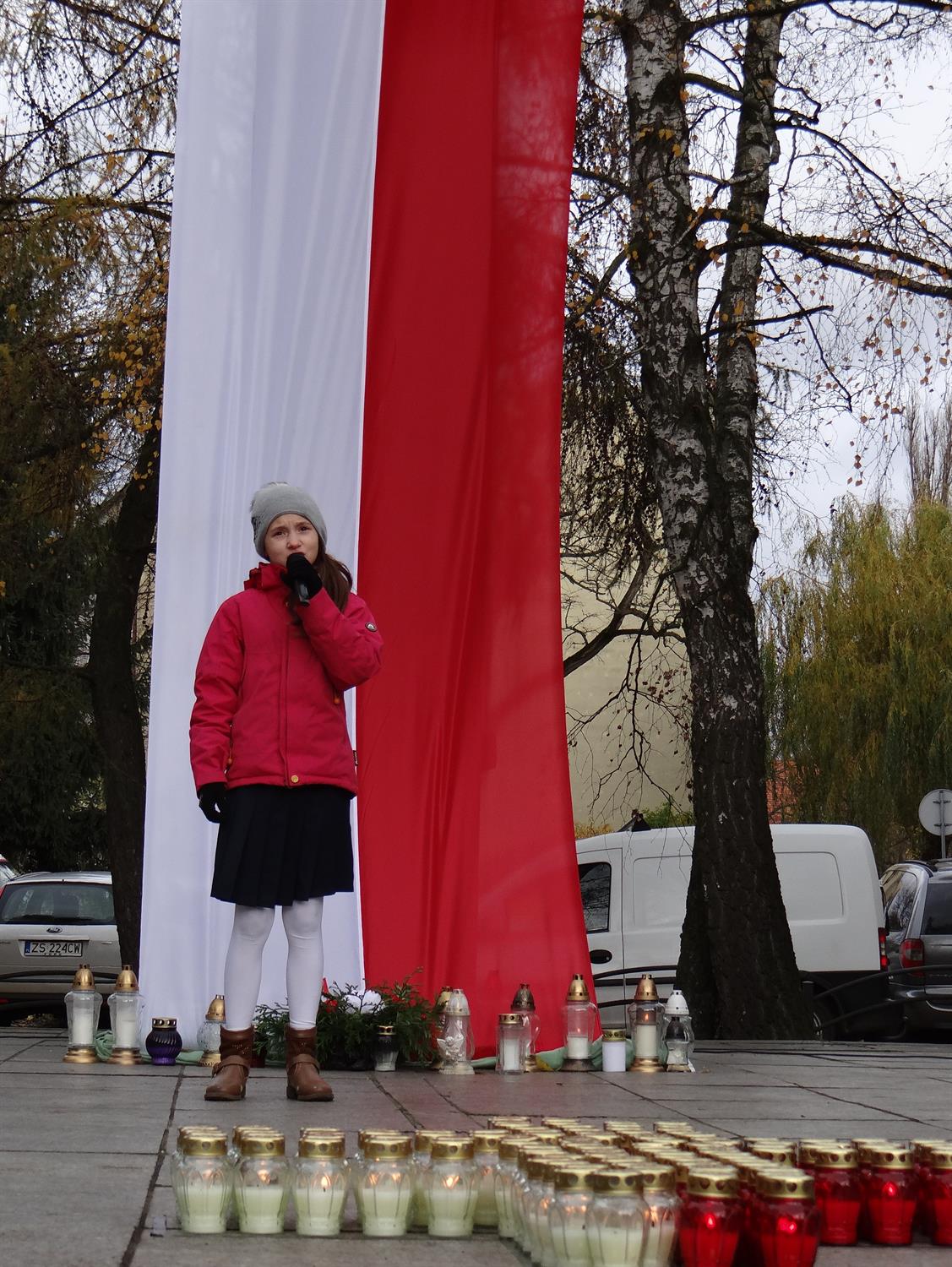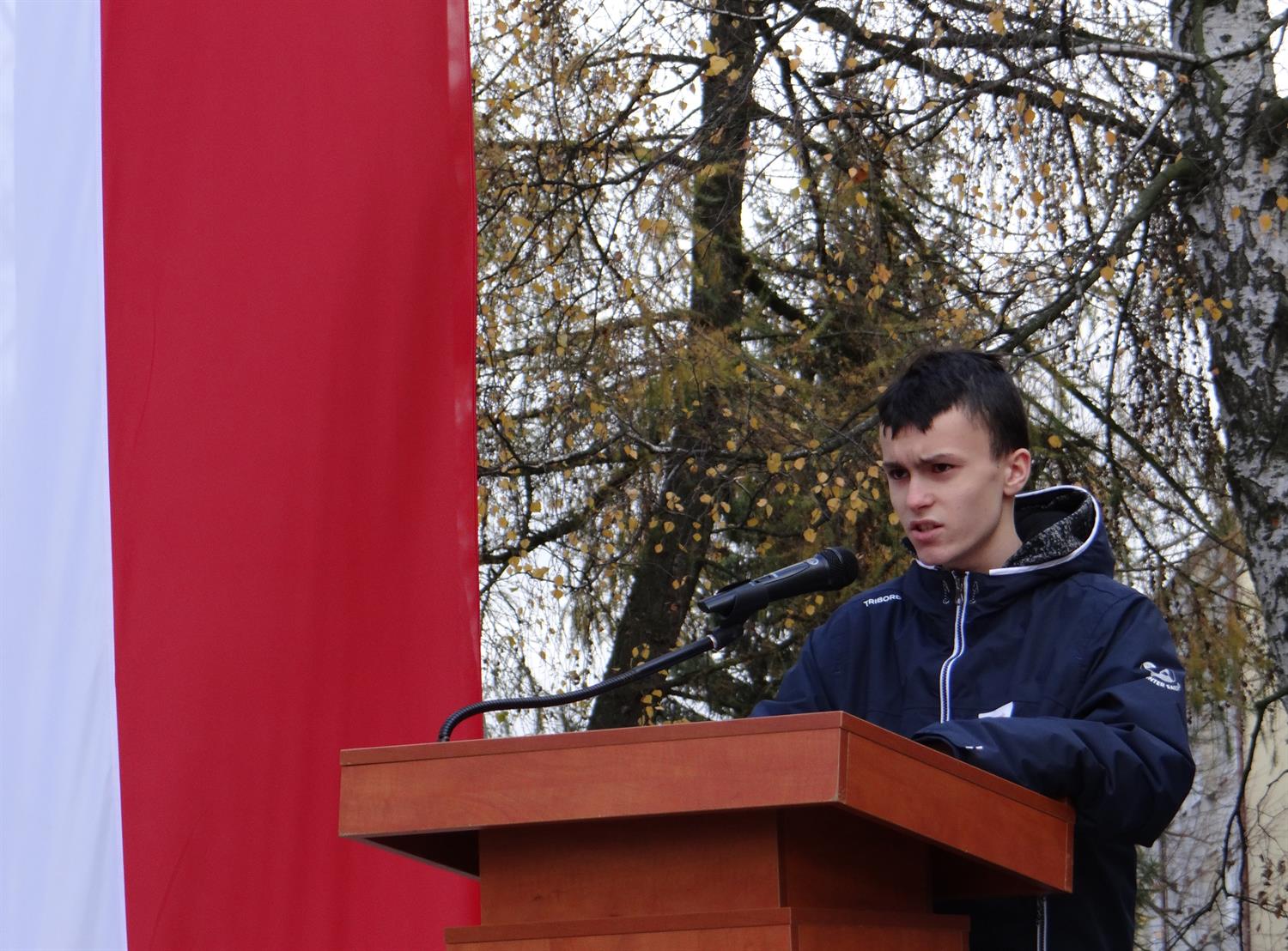 Przed pomnikiem „Poległym w Walkach o wyzwolenie Dąbia” na placu u zbiegu ulic Emilii Gierczak i Józefa Mianowskiego w Dąbiu w sobotę odbyły się uroczyste obchody Narodowego Święta Niepodległości. Poprzedziły je nabożeństwo w kościele Wniebowzięcia Najświętszej Marii Panny, koncert orkiestry dąbskiego Miejskiego Ośrodka Kultury i przemarsz mieszkańców na spotkanie w asyście uczniów klas mundurowych Zespołu Szkół nr 2 im. Władysława Orkana.