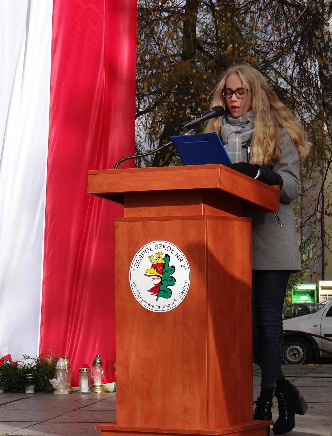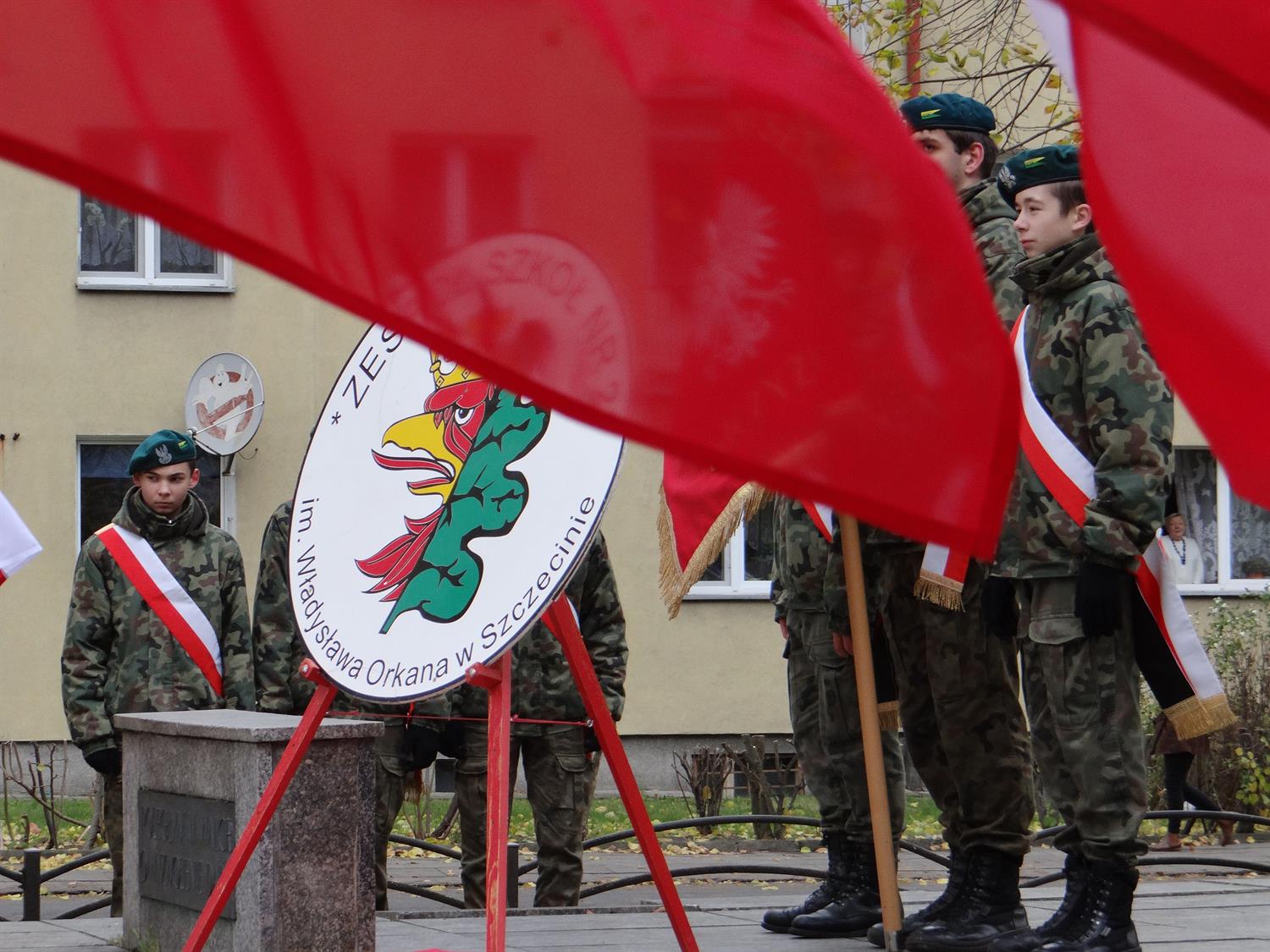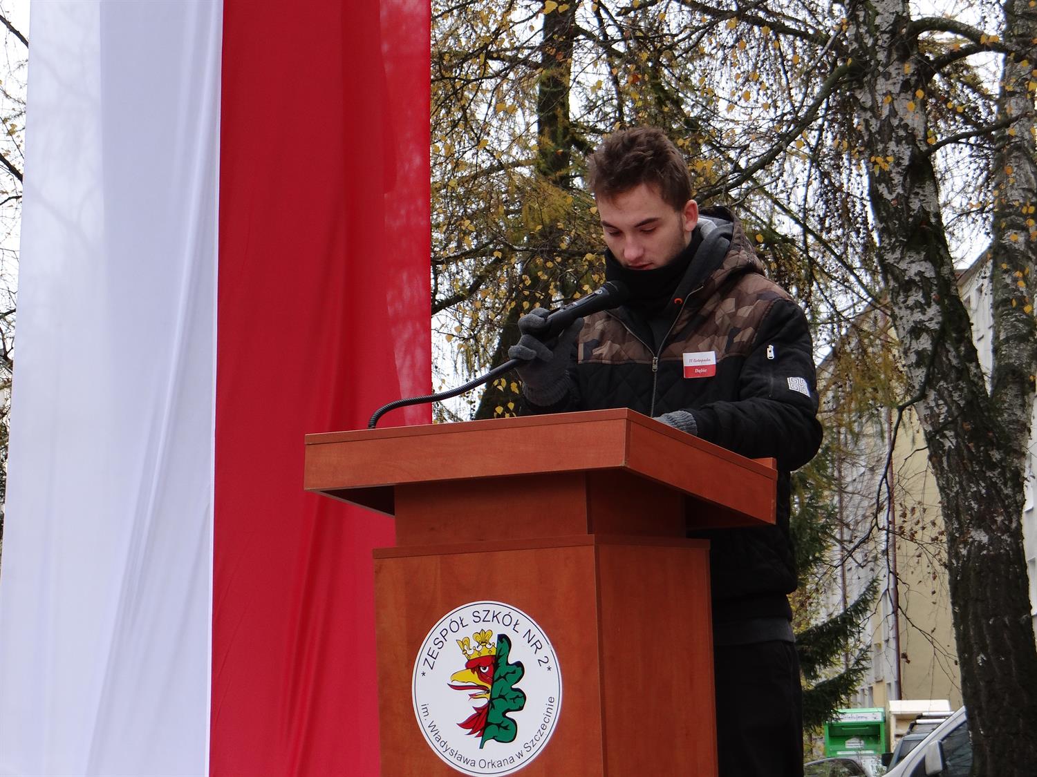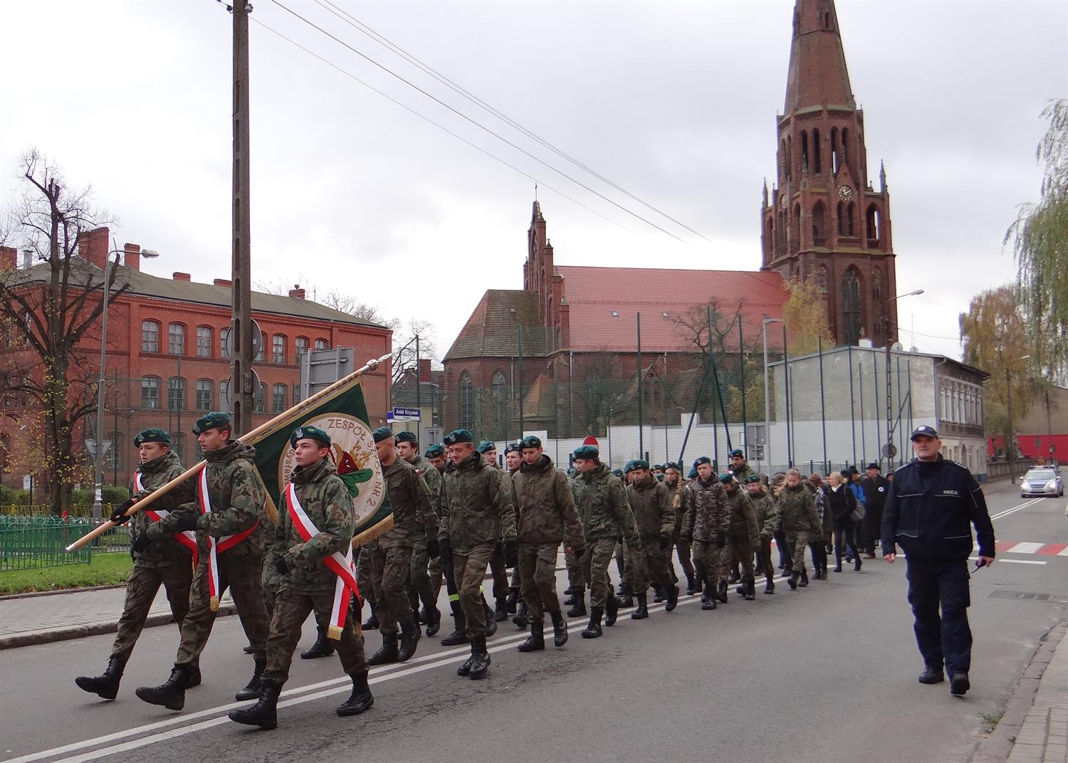Przed pomnikiem „Poległym w Walkach o wyzwolenie Dąbia” na placu u zbiegu ulic Emilii Gierczak i Józefa Mianowskiego w Dąbiu w sobotę odbyły się uroczyste obchody Narodowego Święta Niepodległości. Poprzedziły je nabożeństwo w kościele Wniebowzięcia Najświętszej Marii Panny, koncert orkiestry dąbskiego Miejskiego Ośrodka Kultury i przemarsz mieszkańców na spotkanie w asyście uczniów klas mundurowych Zespołu Szkół nr 2 im. Władysława Orkana.