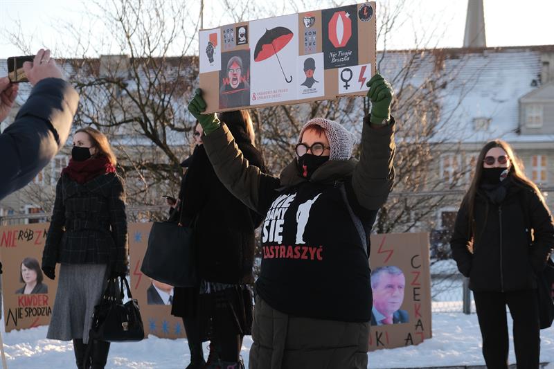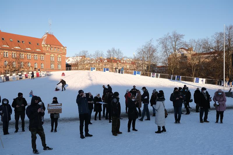 Przekonywali, że solidarność jest ich bronią, dlatego wychodzą na ulice i place, aby wspólnie przeciwstawiać się odbieraniu wolności i niezależności. Mimo że szeregi protestujących coraz bardziej są przerzedzone. Tym razem w zgromadzeniu, które współorganizowały Fundacja RÓWNiE, Fundacja Pełnia Wyrazu, KOD Zachodniopomorskie, Refugees Szczecin i Młoda Lewica Zachodniopomorskie, wzięło udział około siedemdziesięciu osób. Niektórzy przyszli z flagami Polski i Unii Europejskiej. Pojawiła się też okolicznościowa "galeria twarzy władzy" z wizerunkami Kai Godek, premiera Mateusza Morawieckiego, zachodniopomorskiego posła PiS Jacha i Jarosława Kaczyńskiego okraszone czerwonymi piorunami, symbolami Strajku Kobiet, jak też hasłami: " Nie rób z nas kinder niespodzianek" to do Kai Godek w nawiązaniu do kwestii aborcji i zaostrzenia warunków dopuszczalności przerywania ciąży w przypadku nieodwracalnych wad płodu), "PiS-owi szczepionkę dajmy i wygrajmy" (to do premiera) oraz "Barbarzynki czekają" (skierowane pod adresem posła Michała Jacha). Były też inne transparenty z napisami: "Moja Polska nikogo nie wyklucza. Od nas zależy, jaka Polska będzie jutro", "Katolitaryzm", "2 miliardy pogardy".