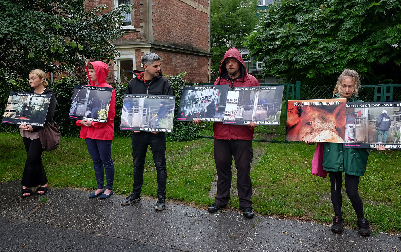 Protestują, aby zwrócić uwagę na cierpienie zwierząt. Stają w obronie dobrostanu również tych idących na rzeź. Apelują o bojkotowanie produktów pochodzenia zwierzęcego. Tym razem postanowili zwrócić uwagę opinii publicznej na brak reakcji inspektorów weterynarii na bicie i znęcanie się nad zwierzętami w „Rzeźni Szczecin".