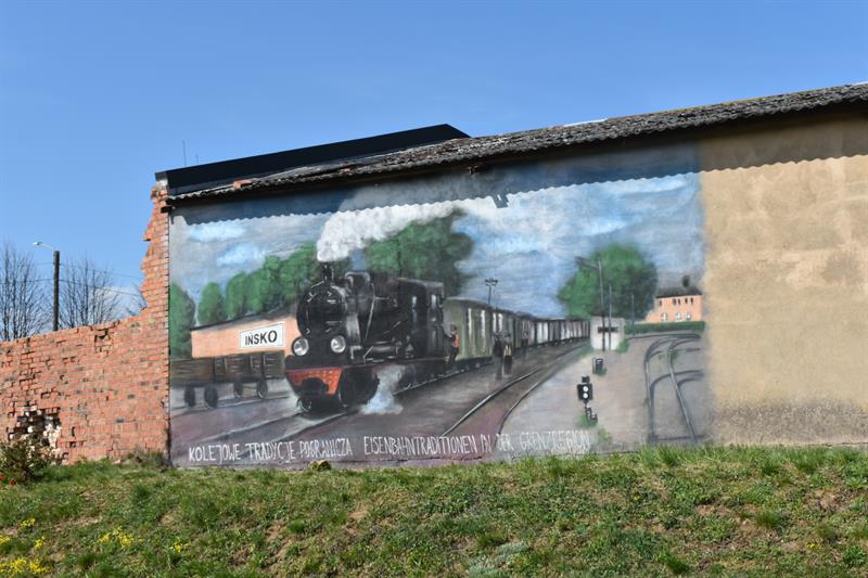 Ścianę, znajdującą się przy wjeździe na teren dawnej kolejki wąskotorowej użyczyli na malunek Danuta i Jan Woźny. Mural powstał w ramach projektu „Poznajemy historię kolei niemiecko-polskiego pogranicza” Fundacji Baltic Natura w Szczecinie, programu współpracy Interreg VI A Meklemburgia-Pomorze Przednie / Brandenburgia / Polska 2021-2027.