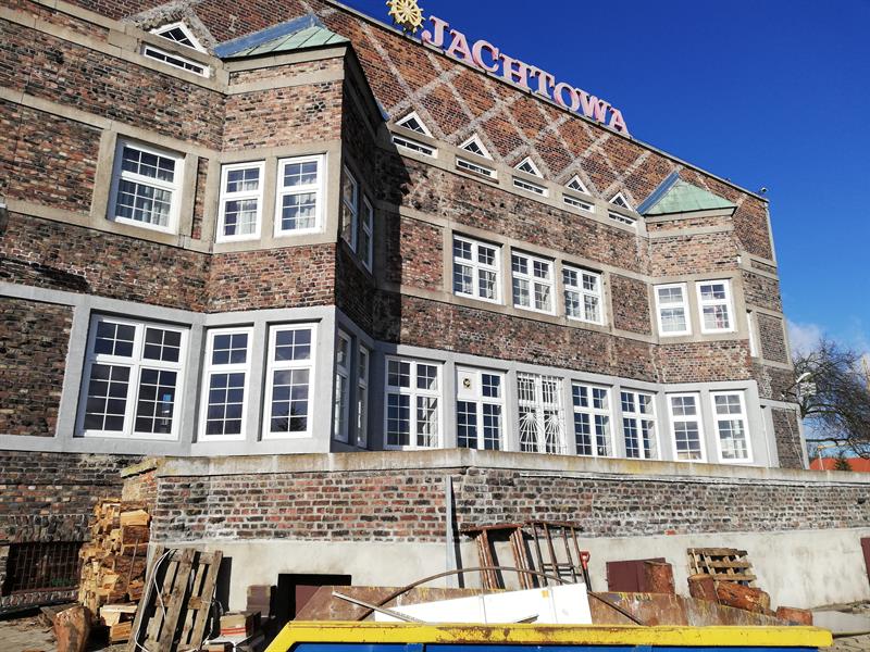 Budynek „Jachtowej” powstał na bazie istniejącego lokalu „Gotzlow”, który wybudowany został w 1860 roku. W 1920 roku został przejęty przez klub jachtowy „Pommern” i został zaprojektowany na potrzeby żeglarzy przez Gustawa Gaussa. Jak podaje w swojej książce „Szczecin, Gocław, Golęcino” Marek Łuczak, wtedy rozebrano zabudowę gastronomiczną i powiększono basen jachtowy. Przez wiele lat Gocław był tętniącą życiem bazą dla żeglarzy, także z Berlina. Nie brakowało tu również wioślarzy. Nic dziwnego, że ówcześni działacze założyli w 1877 roku „Związek Szczecińskich Żeglarzy i Wioślarzy”.