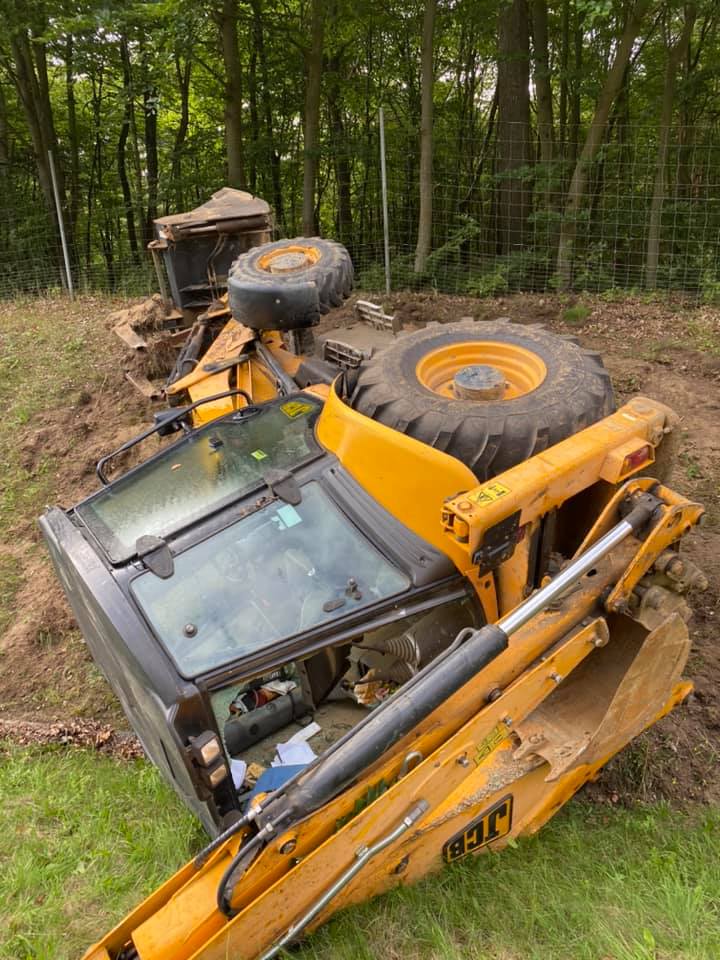 - Kierowca koparko-ładowarki wbrew przepisom ruchu drogowego wjechał na drogę ekspresową S-10, poruszał się w kierunku Kobylanki - informuje podkom. Krzysztof Wojsznarowicz z Komendy Powiatowej Policji w Stargardzie. - Wjechał na pas, którym poruszało się ciężarowe auto. Doszło do zderzenia pojazdów, koparko-ładowarka przewróciła się.