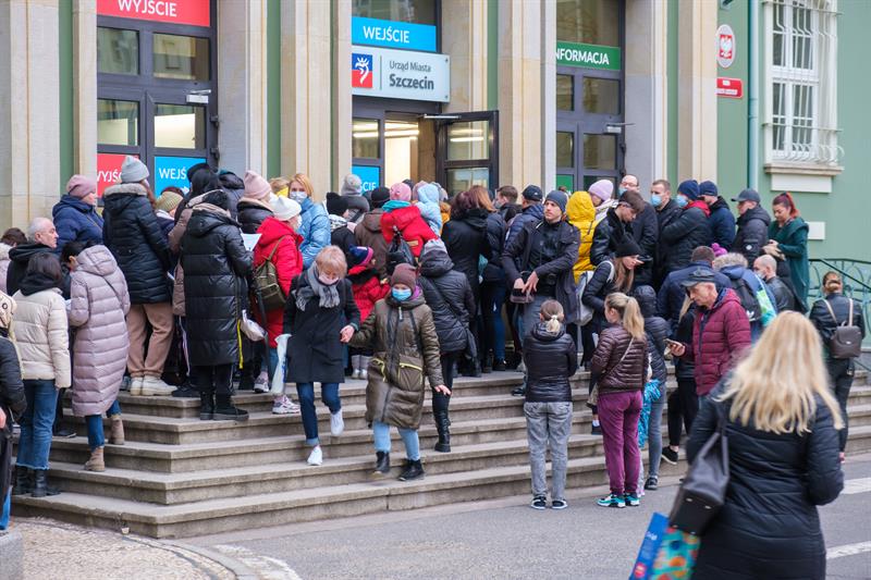 Kilkaset osób ustawiło się w środę rano w kolejce przed Urzędem Miasta w Szczecinie. To uchodźcy z Ukrainy, którym od 16 marca nadawane są numery PESEL.