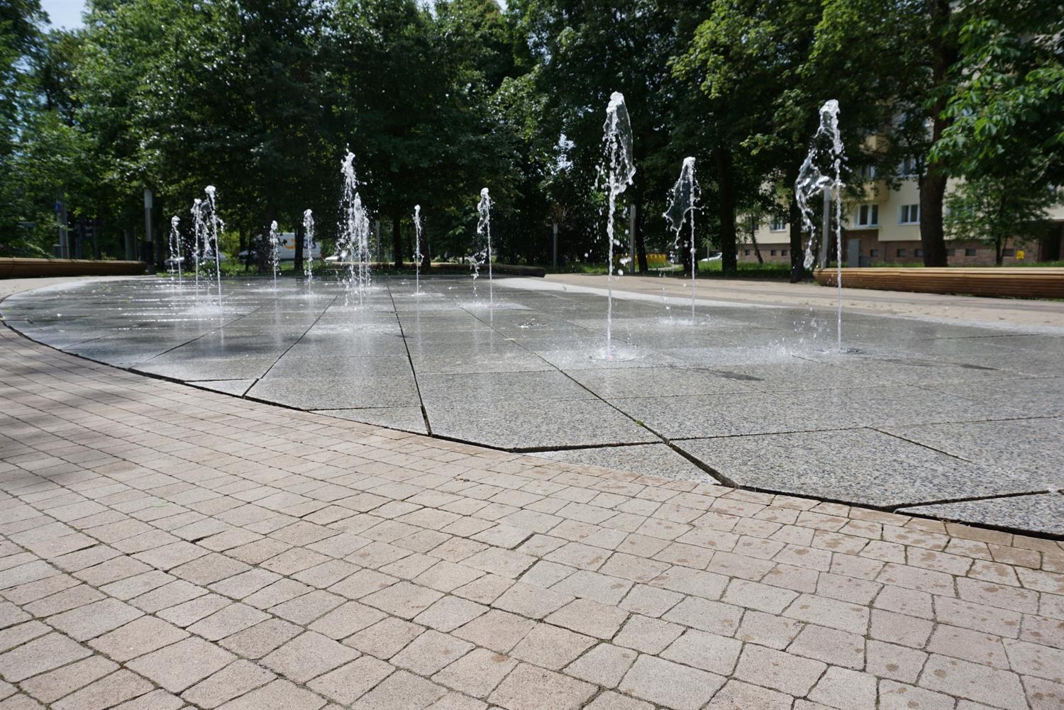 Na zdjęciu: Na skwerku u zbiegu al. Wojska Polskiego i ul. Wawrzyniaka woda w końcu trysnęła.