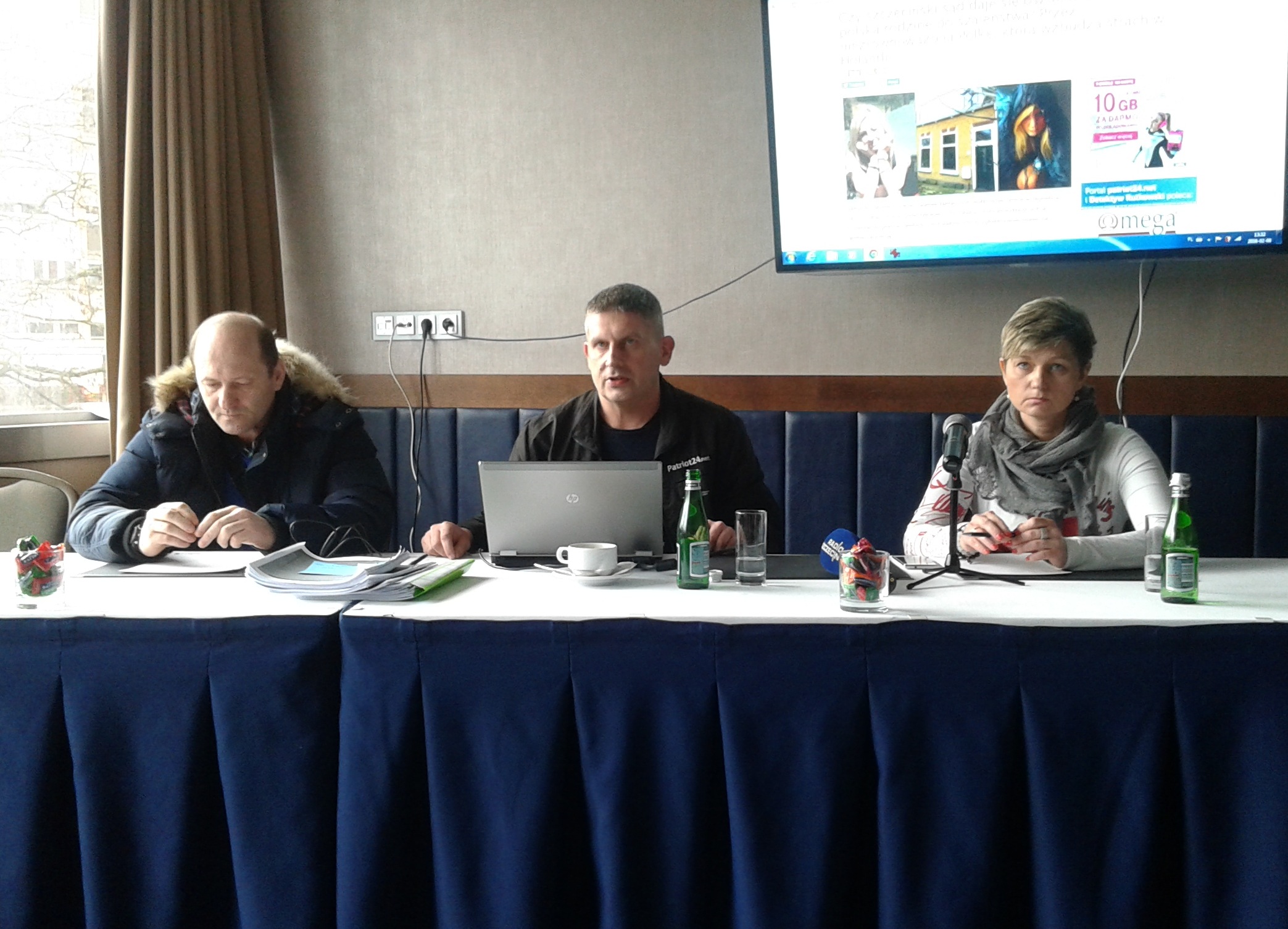 Na zdjęciu: Robert Rewiński (w środku) opowiedział dziennikarzom historię rzekomego długu szczecińskiego biznesmena