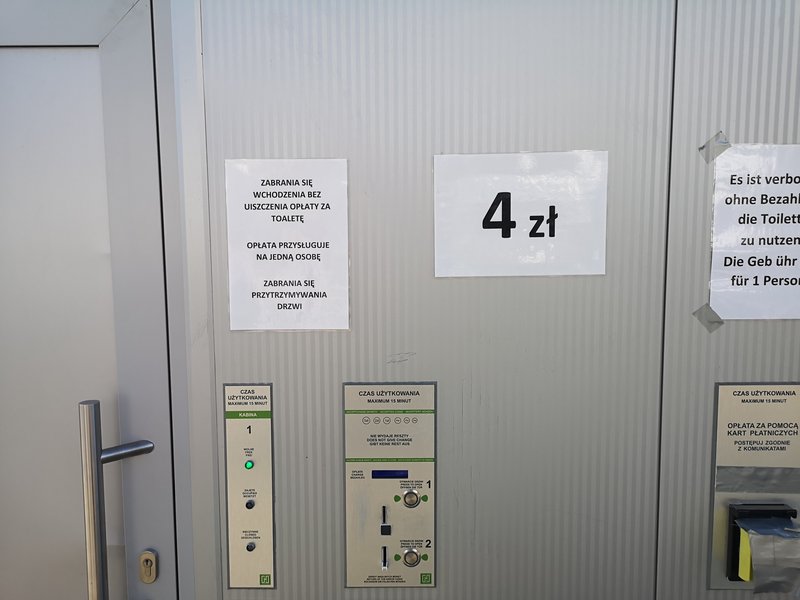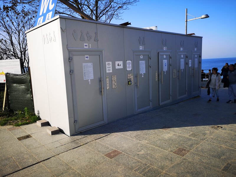 Koło hotelu Amber stoi nowoczesna czterokabinowa toaleta płatna. Nowoczesny automat z wieloma przyciskami, gdzie za wejście do środka trzeba zapłacić 4 zł. Jeden z gości zapłacił, ale drzwi się nie otworzyły. Spróbował jeszcze raz, stracił kolejne 4 zł (kartą kredytową nie można było płacić - awaria) i wszedł do kabiny, w której nie było papieru toaletowego, wody i oświetlenia.