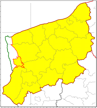 Na zdjęciu: ostrzeżenie dotyczy prawie całego obszaru województwa zachodniopomorskiego.