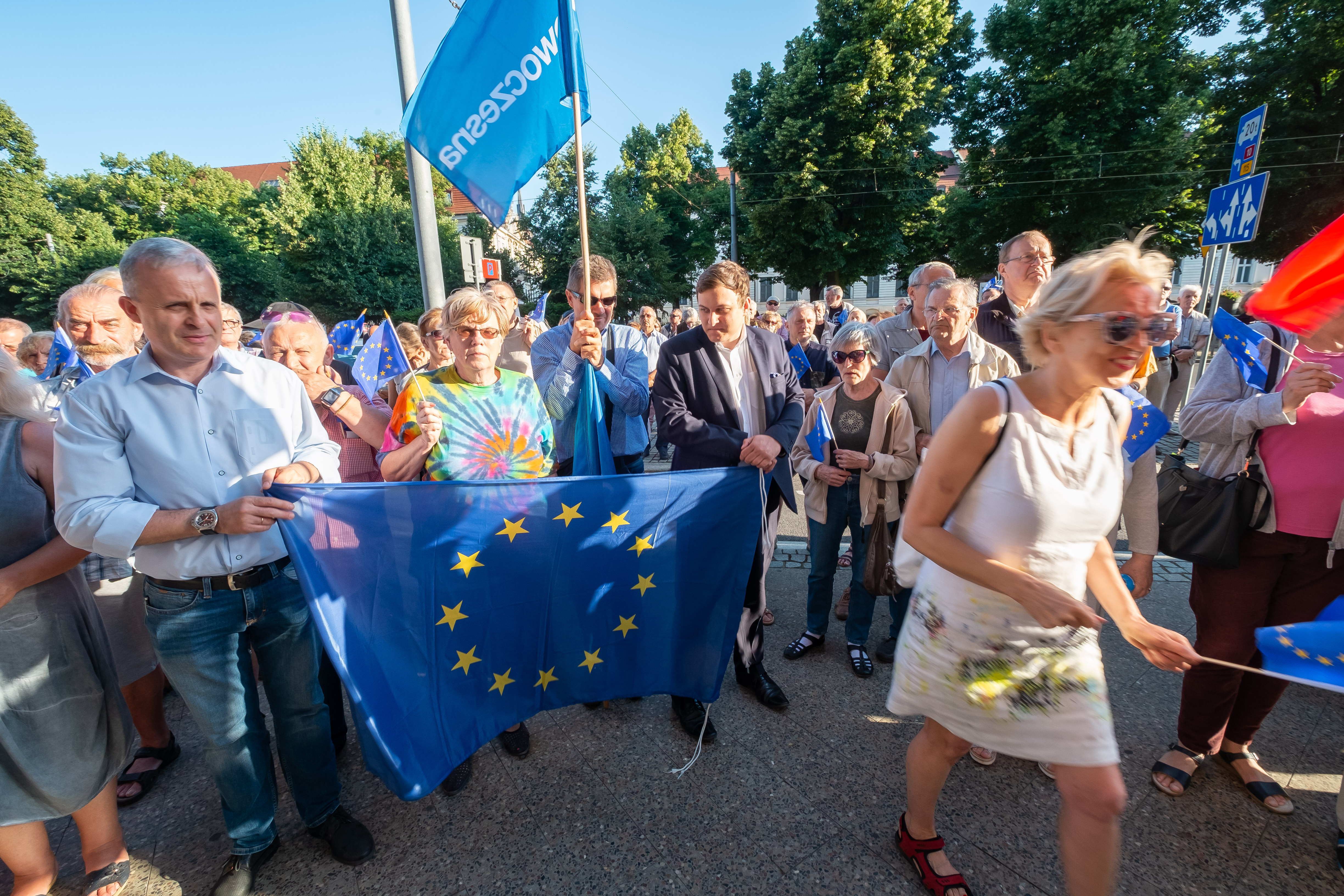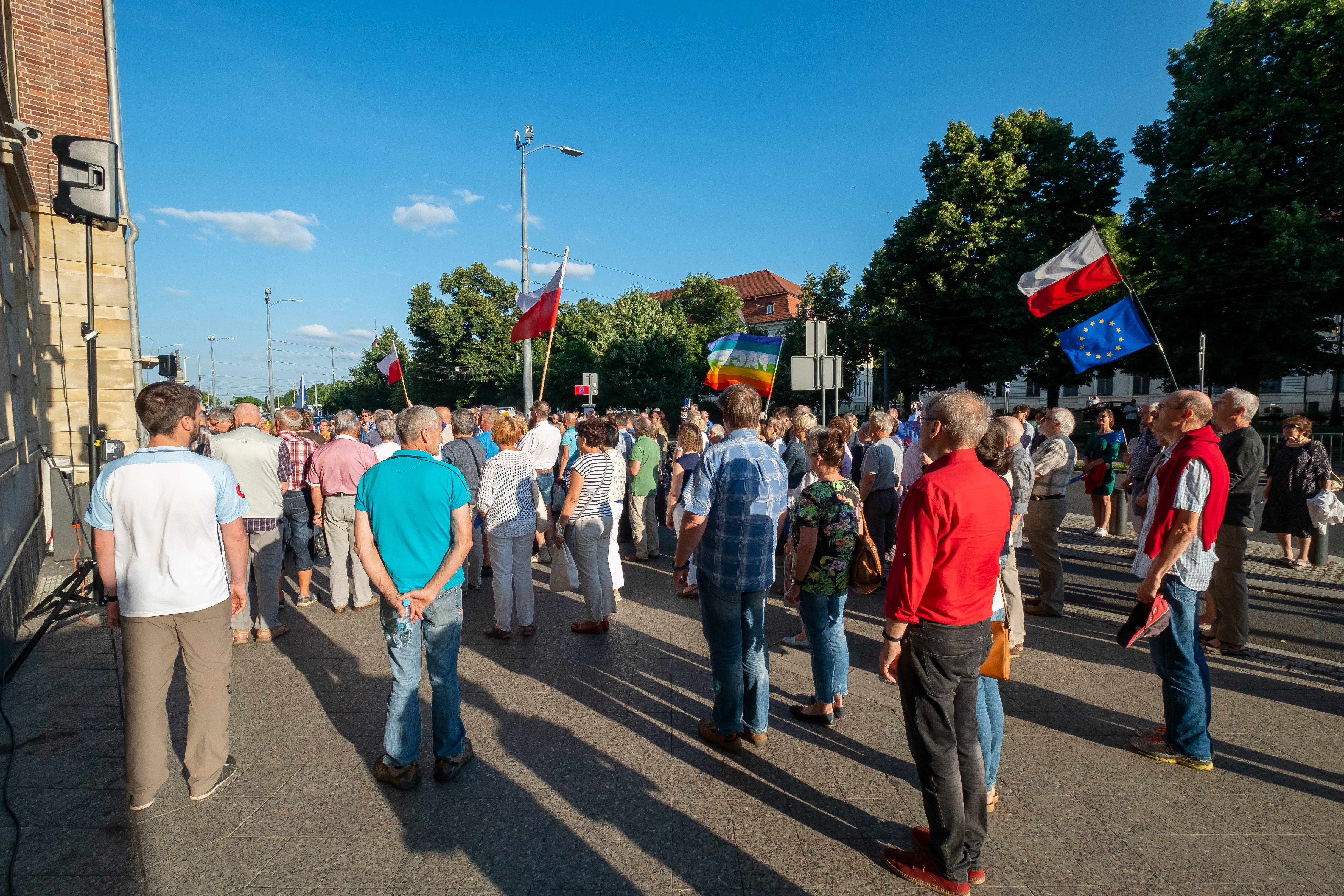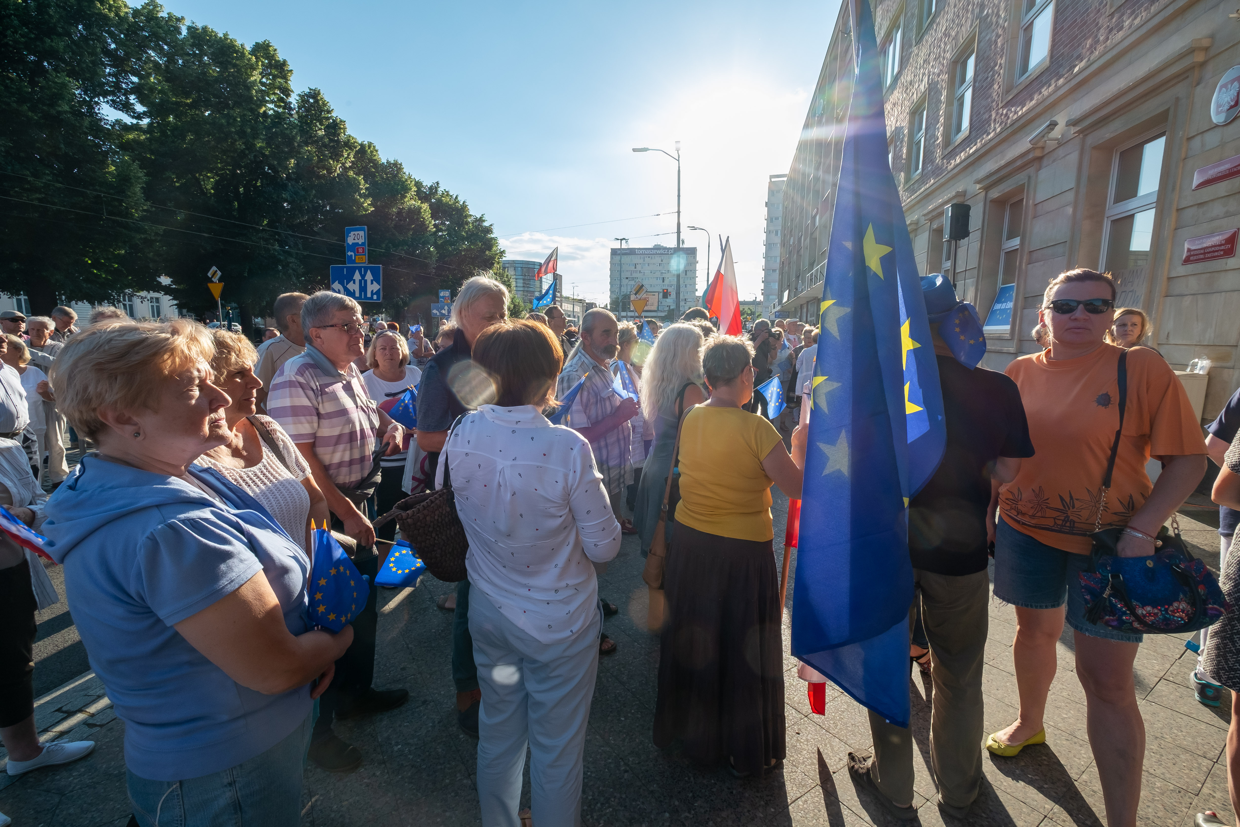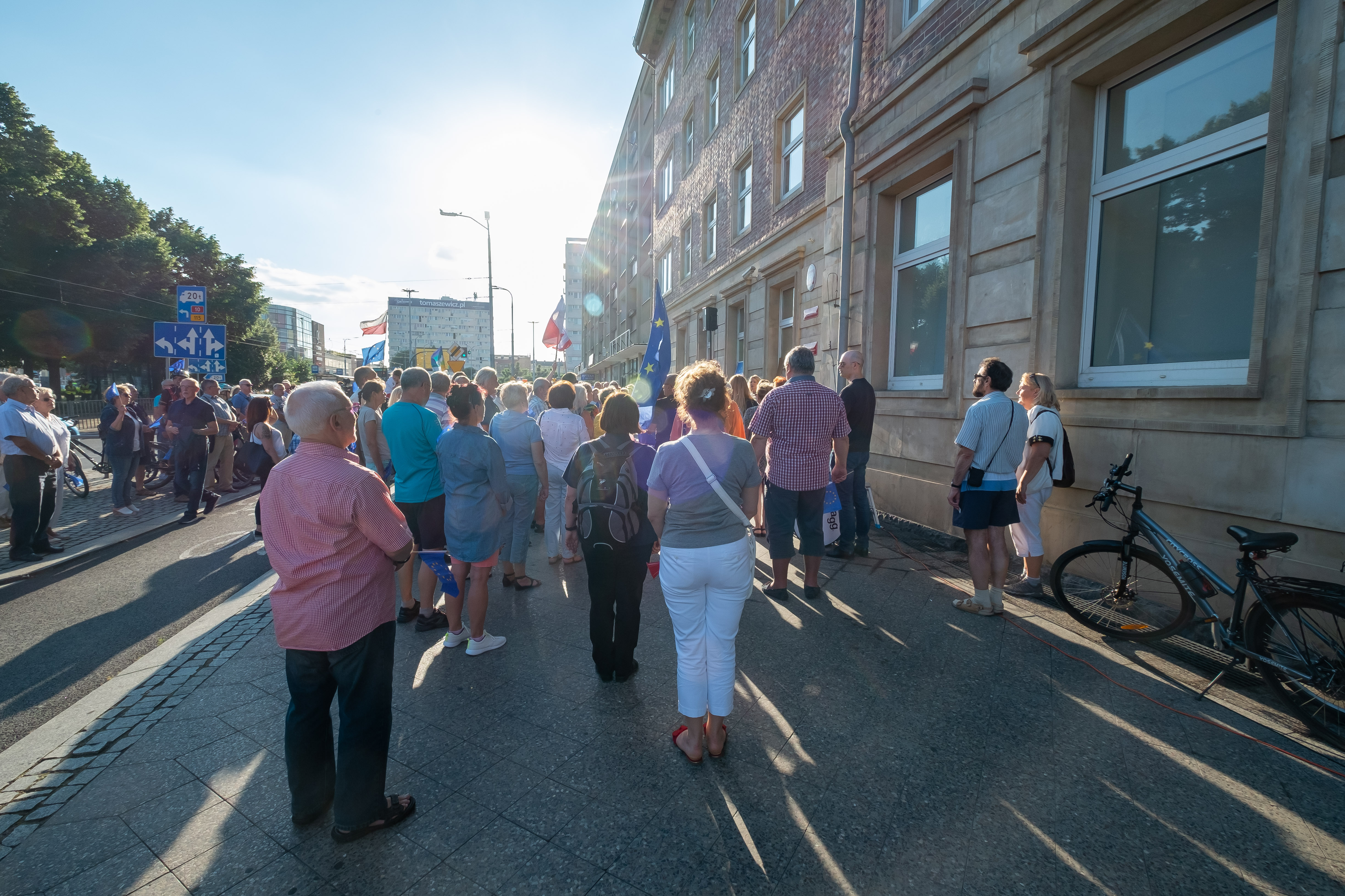 Europo nie odpuszczaj! Bronimy niezależnych sądów! - to hasła, które się pojawiły podczas protestu przed sądem przy pl. Żołnierza Polskiego w Szczecinie, zorganizowanego w poniedziałek 11 czerwca przez Komitet Obrony Demokracji. Gościem specjalnym zgromadzenia była Henryka Krzywonos, owacyjnie przyjęta przez kilkuset uczestników protestu
