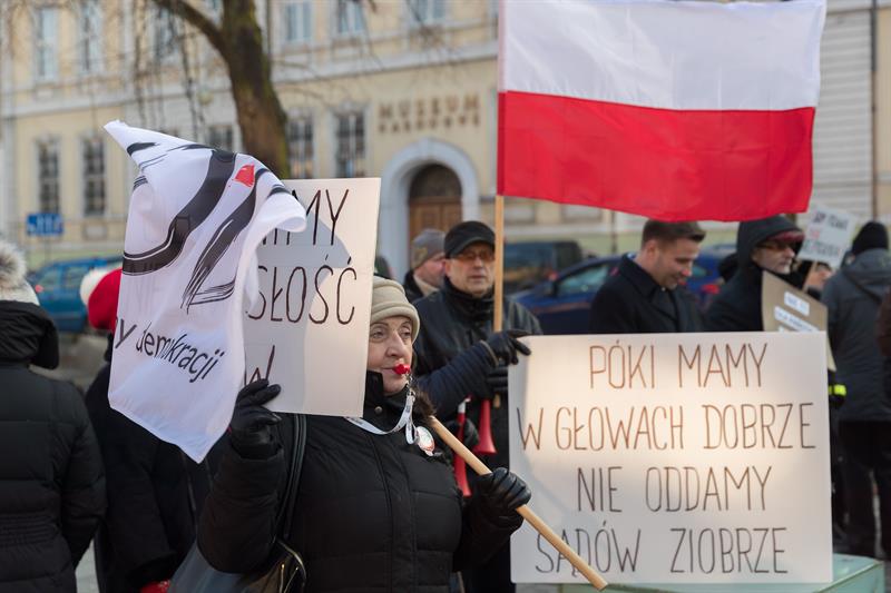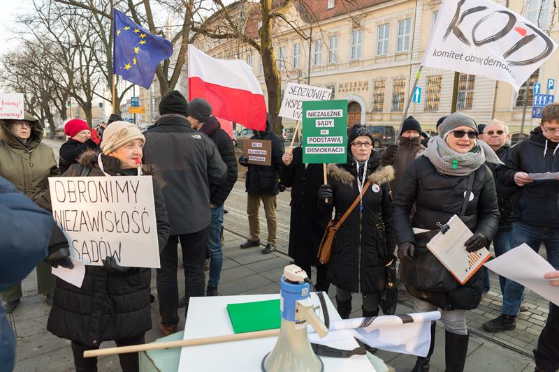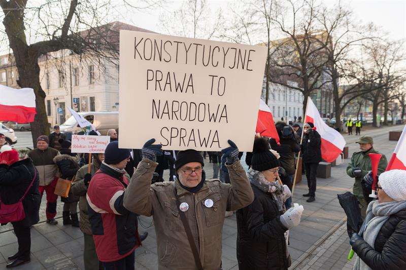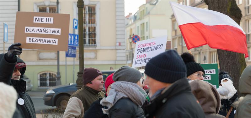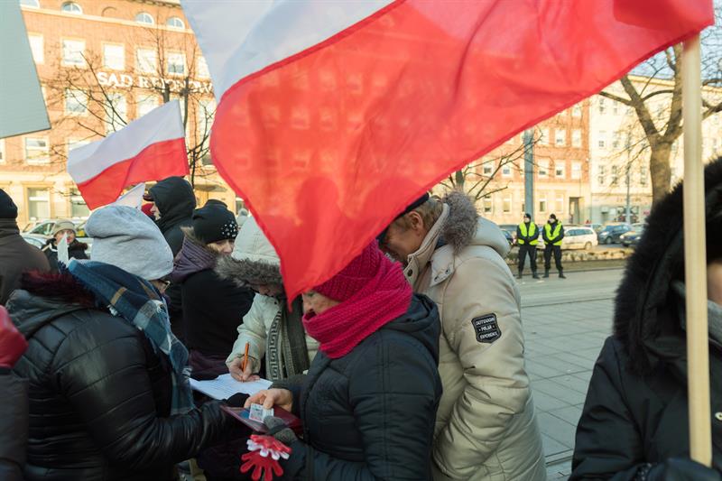 Pomimo przeraźliwego zimna w piątkowej pikiecie Komitetu Obrony Demokracji wzięło udział blisko stu protestujących. Protestowali przeciwko podporządkowaniu sobie przez PiS polskiego sądownictwa.