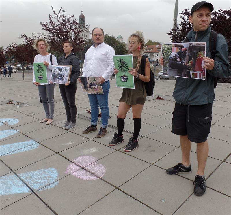 Przeciwko zniszczeniu europejskiej rezerwy przyrody, jaką jest Las Hambacher w Północnej Nadrenii-Westfalii, protestują europejscy ekolodzy. Także w Polsce. Również w Szczecinie kameralna manifestacja w geście solidarności - przeciwko wycince wiekowego lasu sukcesywnie zawłaszczanego przez kopalnię odkrywkową węgla brunatnego w rejonie Manheim - odbyła się w piątek (21 września), na pl. Solidarności.