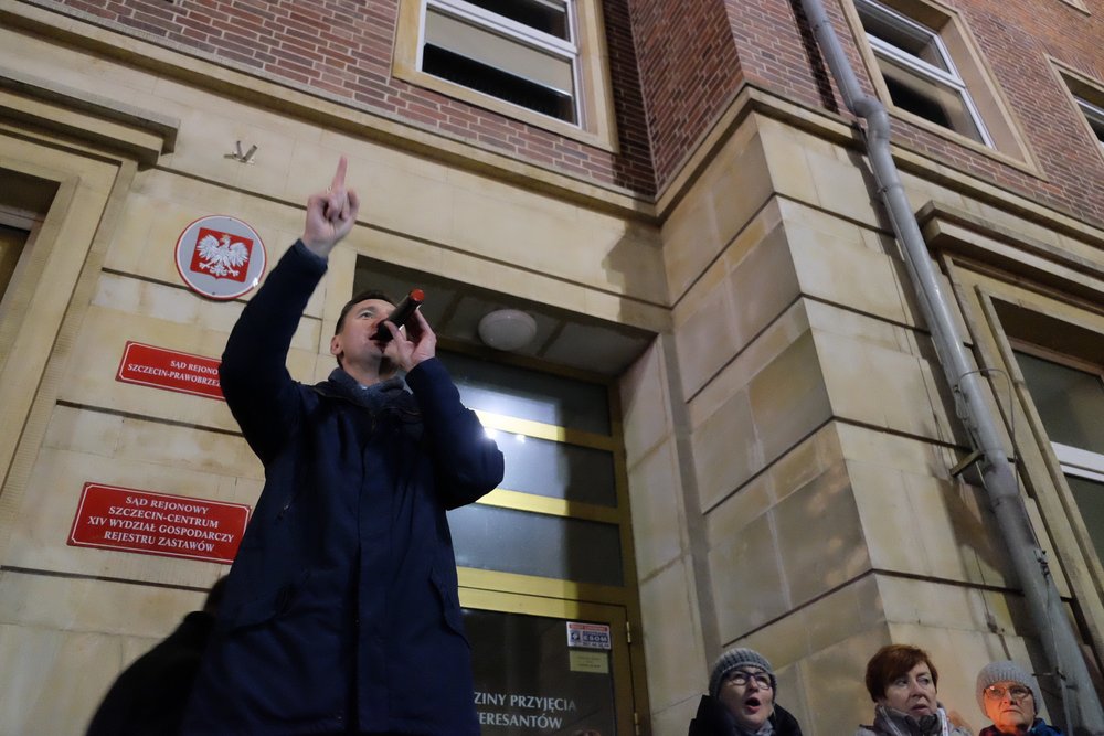 Kilkaset osób przybyło o godz. 19 przed sąd na Placu Żołnierza w Szczecinie, żeby wziąć udział w manifestacji w obronie wolnych sądów. Pikietują pod hasłem: „Wolne Sądy, Wolne Wybory, Wolna Polska". Podobne zgromadzenia w tym czasie odbywają się w wielu miastach.