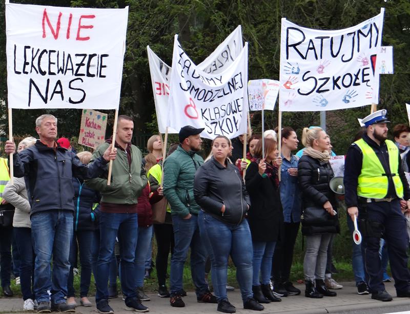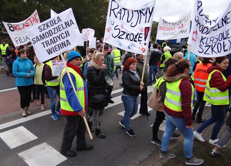 - Filia nie, osiem klas! Walczymy o następne pokolenia! Kochamy naszą szkołę! Naczelniku usłysz nas: chcemy osiem klas! - skandowali demonstrujący, kierując ostatnie z zawołań personalnie do Witolda Stefańskiego, naczelnika wydziału oświaty i kultury w Urzędzie Miejskim w Policach.