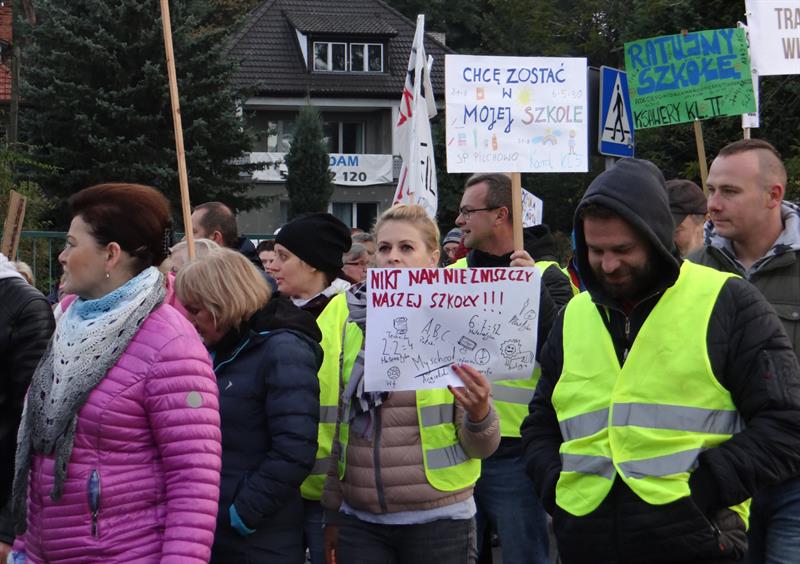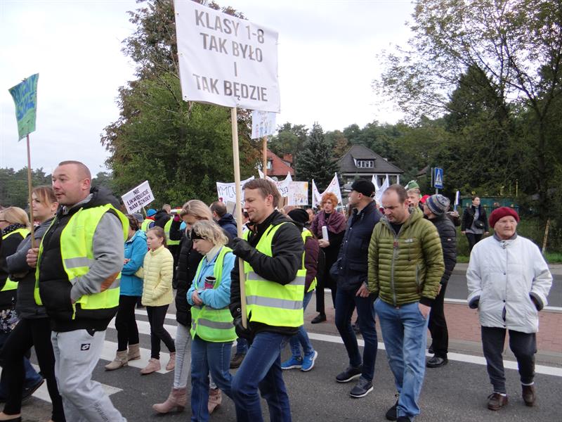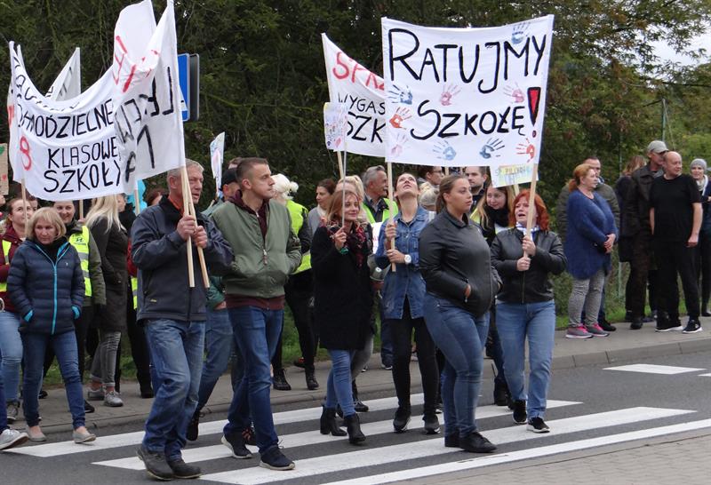 W liczbie ponad stu osób, w tym wielu już dorosłych absolwentów ze swoimi dziećmi, obecni i byli nauczyciele, wyszli na ulice z transparentami, bo kolejny raz na przestrzeni ostatnich dwóch dekad obawiają się o przyszłość dotąd funkcjonującej w ich wsi szkoły podstawowej. Domagają się od samorządowców gminy Police działań, które doprowadzą do przywrócenia jej statusu jako w pełni samodzielnej 8-klasowej placówki. Teraz pilchowska podstawówka jest filią SP w Tanowie z klasami 1-6 i ulokowanymi w niej od tego roku, od września, oddziałami przedszkolnymi dla 3- i 4-latków. Mieszkańcy pilchowskiego sołectwa jednocześnie oczekują decyzji dotyczących rozwoju bazy i zaplecza dydaktycznego oraz zabezpieczenia przez gminę odpowiednich środków na ich rozbudowę.