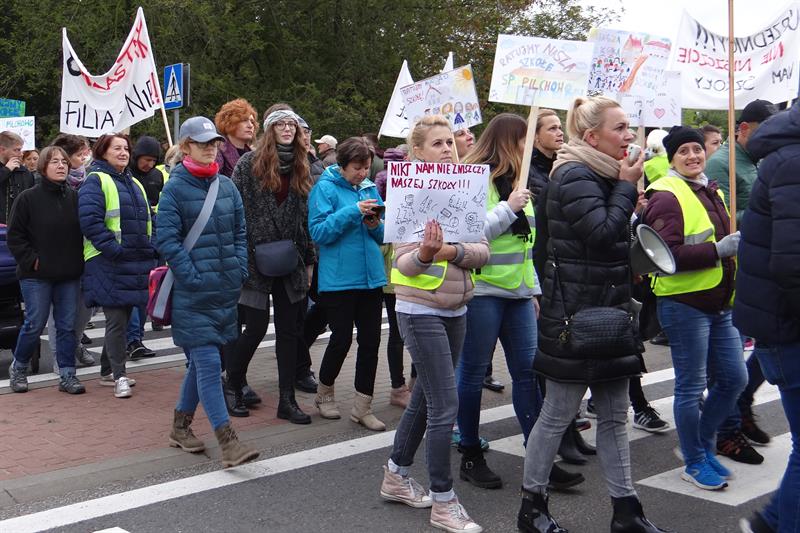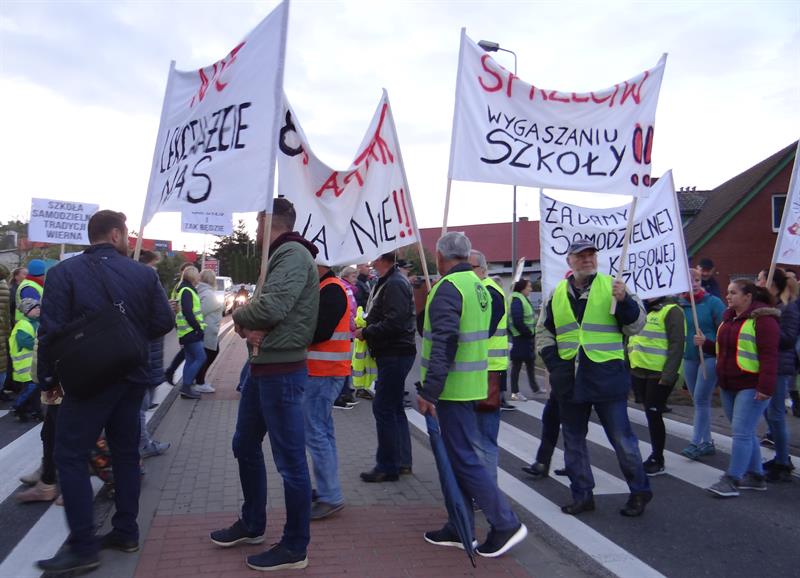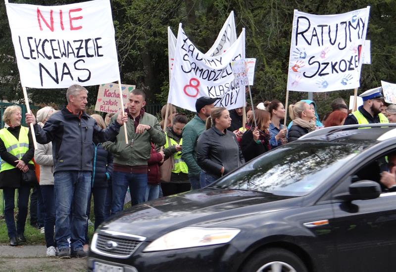 „Nie lekceważcie nas", „Kochamy naszą szkołę", „Urzędnicy nie niszczcie nam szkoły", „Szkoła samodzielna tradycji wierna" - to tylko niektóre z licznych haseł, pod jakimi w piątek (4 października) od świtu przed dwie dwie godziny manifestowali w Pilchowie (gmina Police) mieszkańcy, żądając od władz samorządowych Polic decyzji o przywróceniu działającej w ich wsi szkole statusu pełnoprawnej samodzielnej 8-klasowej szkoły podstawowej. Kolejną manifestację w tej sprawie zapowiadają na następny piątek, 11 października, przed Urzędem Miejskim w Policach.
