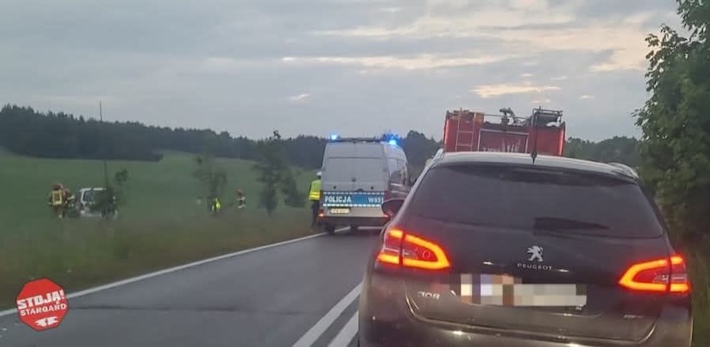 Dziś wieczorem w pobliżu Grabowa w gminie Stargard samochód osobowy na zakręcie wypadł z drogi i uderzył w drzewo. Na miejscu działali strażacy, policja, wezwano zespół ratownictwa medycznego.