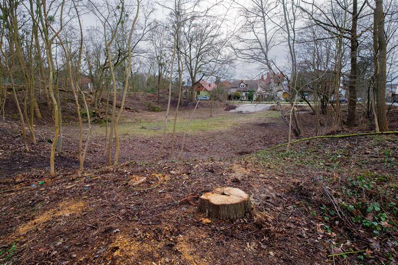 Miejsce zielonej enklawy przy ul. Chełmińskiej wkrótce zmieni się w plac budowy. Trwa jego przygotowanie, czyli usuwanie zieleni kolidującej z inwestycją. Początkowo z zacisznego terenu w bliskości kameralnej zabudowy jednorodzinnej miało zostać wyciętych aż 95 wysokich drzew - tym np. robinia akacjowa mająca 231 cm w obwodzie pnia czy dąb szypułkowy o wymiarach pomnikowych - 233 cm w obwodzie.