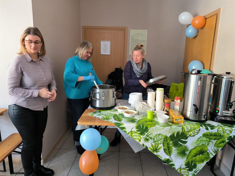 Na ten pierwszy czwartek przygotowano 40 litrów zupy. Tym razem ugotowało ją Koło Gospodyń Wiejskich w Niekłończycy. Ciasto upiekły pracownice OPS.