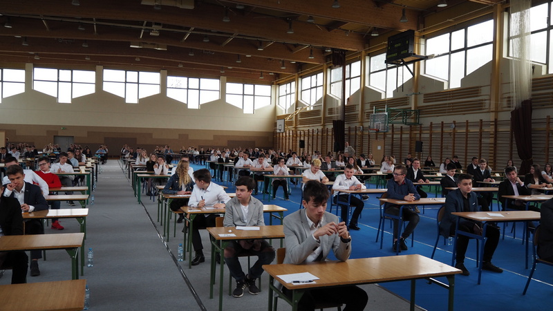 Większość pisze na sali gimnastycznej. Uczniowie ze specjalnymi potrzebami (np. ze wskazaniami do wydłużonego czasu egzaminu) - w salach lekcyjnych tej samej placówki. W komisjach są nauczyciele z wszystkich szkół, którzy nie strajkują.