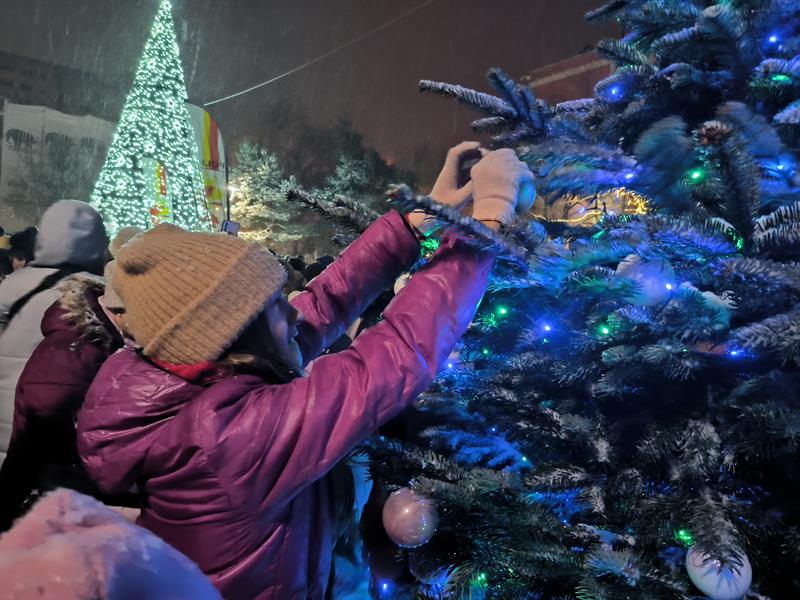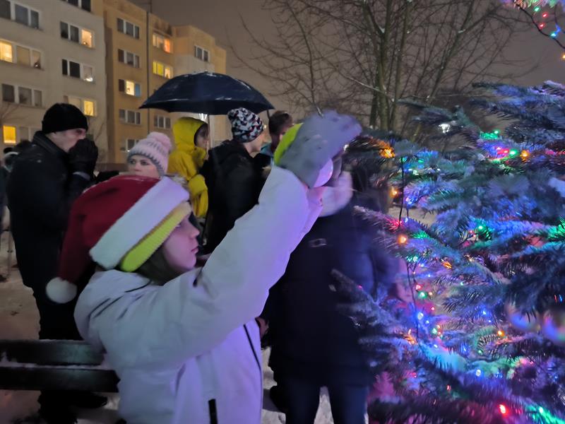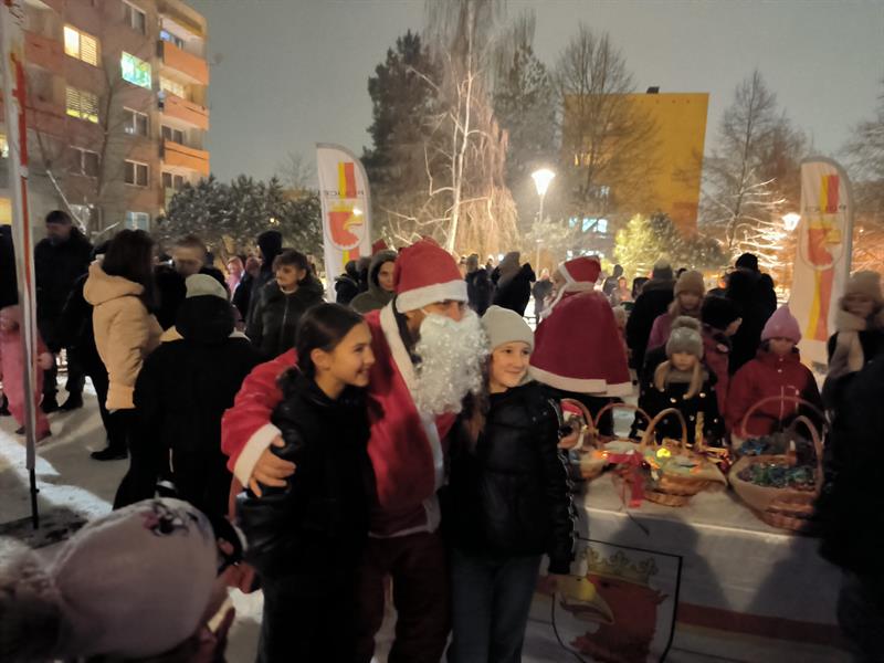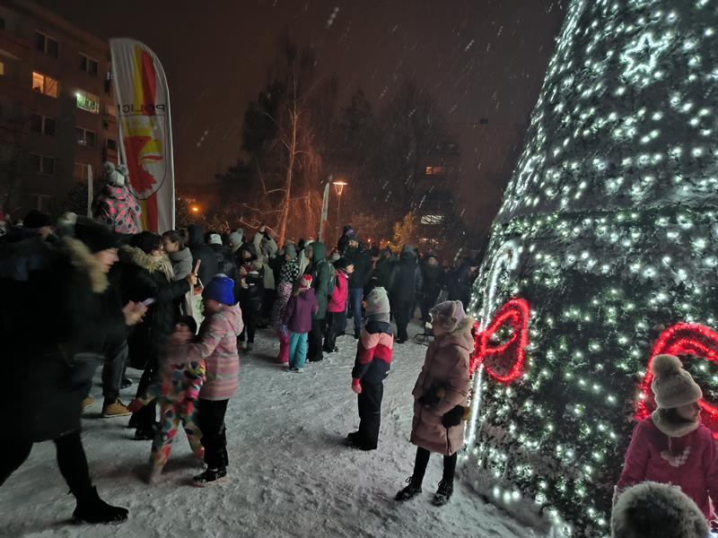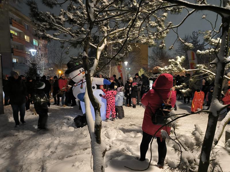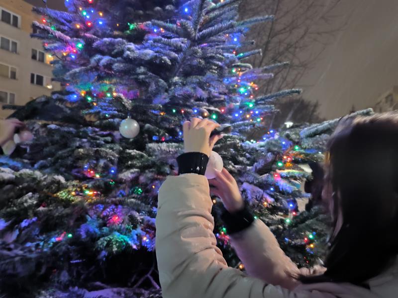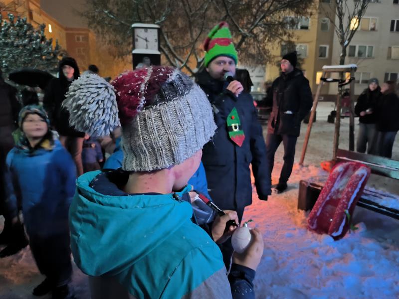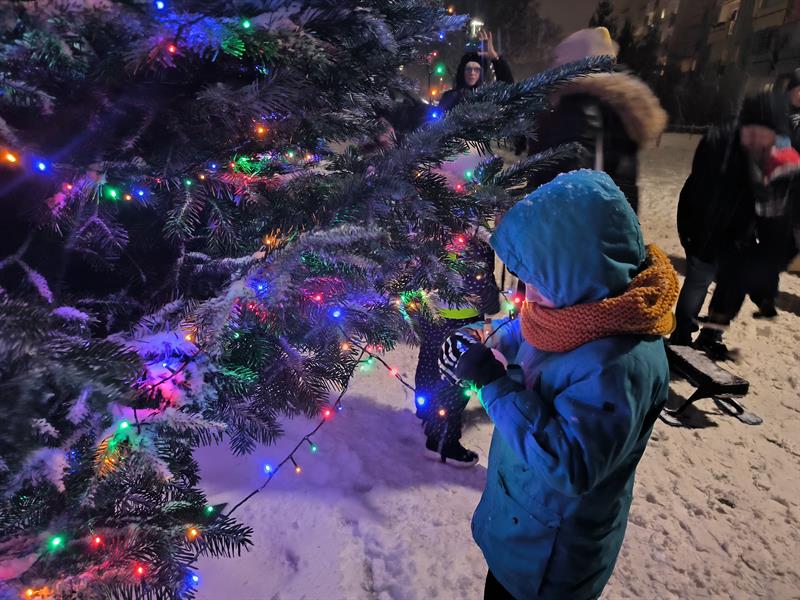 Duże, świąteczne drzewko stanęło na deptaku im. Ryszarda Tokarczyka. A właśnie w środę 6 grudnia wokół niego przechadzał się mikołaj w towarzystwie gminnych włodarzy. Chodzili z koszami pełnymi cukierków i bombek. Bombki można było własnoręcznie podpisać lub ozdobić i powiesić na żywej choince. Wielu tak właśnie robiło. Atmosfera była prawdziwie świąteczna - padał śnieg, a otoczenie rozświetlały nie tylko lampki na choince, ale też żywe płomienie tlące się w rozstawionych specjalnych koszach.