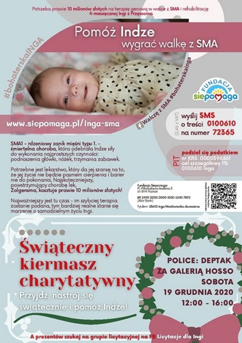 Ingę można też wspierać bez wychodzenia z domu - biorąc udział w jednej z licznych licytacji charytatywnych organizowanych na portalach społecznościowych: #bohaterskaInga lub wpłacając datek na konto zbiórki: siepomaga.pl/inga-sma