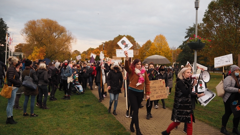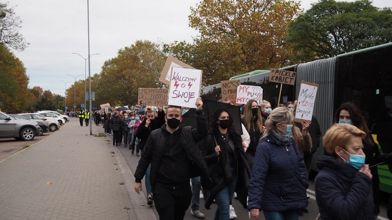 W Policach także wyraźnie wybrzmiał głos osób mocno poruszonych wyrokiem Trybunału Konstytucyjnego w sprawie dopuszczalności aborcji. Ulicami miasta we wtorek (27 października) przeszło około tysiąca osób. Spacer rozpoczął się pod pomnikiem "Ludziom Solidarności" z hasłem: "Myślę, czuję, decyduję". Skandowano też znacznie mocniejsze słowa, kierowane do rządzącej obecnie partii - PiS - i jej prezesa. Na transparentach widniały m.in. hasła: "To jest wojna", "Kobieta to nie inkubator", "Gdyby faceci zachodzili w ciążę, aborcja byłaby sakramentem" i wiele innych, pojawiających się już na protestach w różnych miastach.