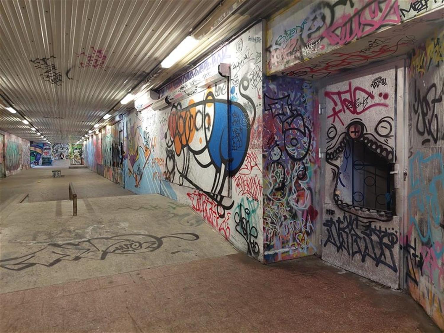 Przejście podziemne całe pokryte jest graffiti - dla jednych jest to wandalizm, ale dla deskorolkowców element subkultury skate. Fot. Katarzyna Lipska-Sokołowska
