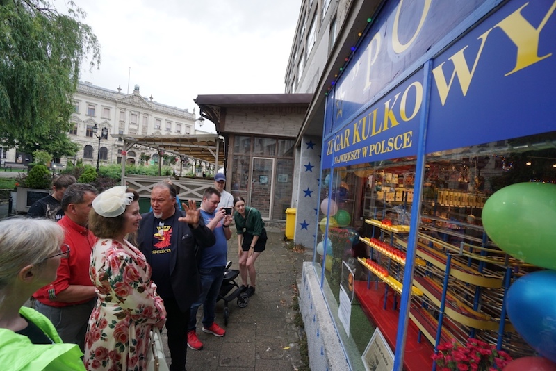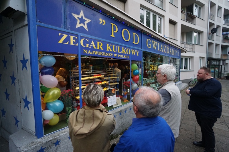 Zegar na co dzień znajduje się w sklepie „Pod Gwiazdami”, a prace nad jego zbudowaniem zajęły konstruktorowi trzy lata. Ostatnio zegar uległ zniszczeniu. Przypomnijmy: 3 maja tuż przed godziną 1 w nocy właściciele zostali powiadomieni o włamaniu do sklepu. Wybito witrynę sklepową, która wpadła do wewnątrz sklepu. Wskutek uderzenia szyba rozpadła się na wiele kawałków. Niektóre z nich uszkodziły stojący tuż przy witrynie zegar kulkowy.
