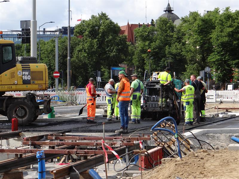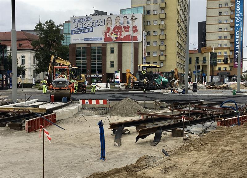 Postęp prac przy przebudowie torowisk w centrum Szczecina sprawia, że co kilka tygodni wprowadzane są kolejne reorganizacje ruchu samochodowego i korekty w funkcjonowaniu komunikacji miejskiej. Najbliższe w rejonie placów Żołnierza Polskiego i Rodła już w ten weekend - od soboty, 24 lipca.