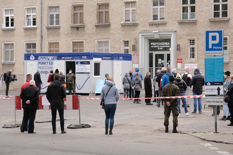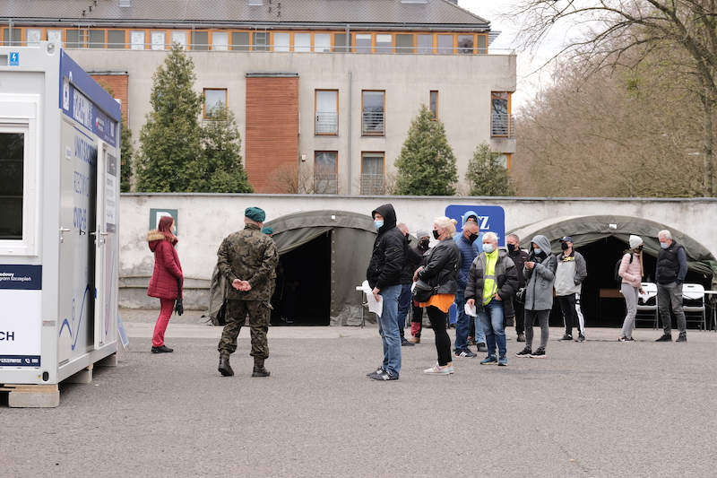 Specjalny punkt szczepień powstał na parkingu przed przychodnią 109 Szpitala Wojskowego przy ulicy Piotra Skargi 34 w Szczecinie. Wystarczy przyjść i zaczekać na swoją kolej – bez wcześniejszego zapisywania się na konkretny termin czy godzinę.