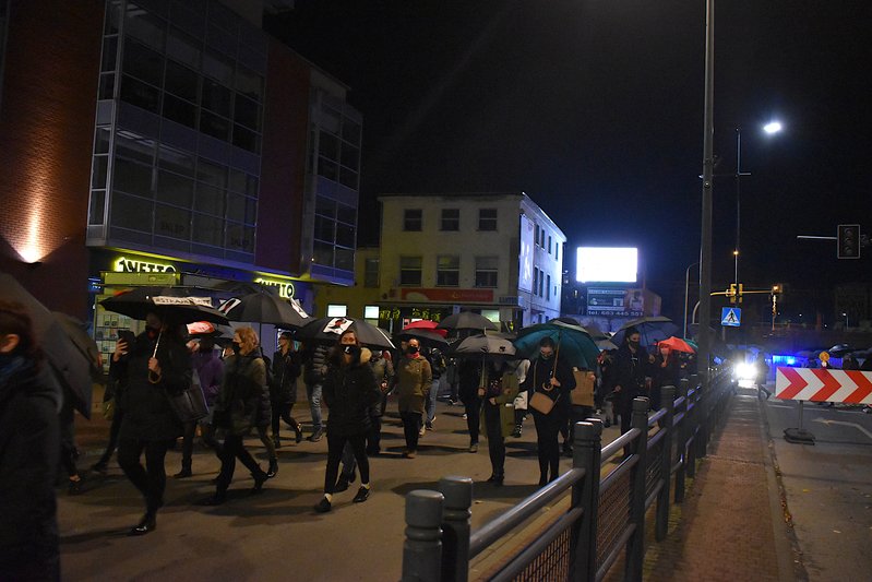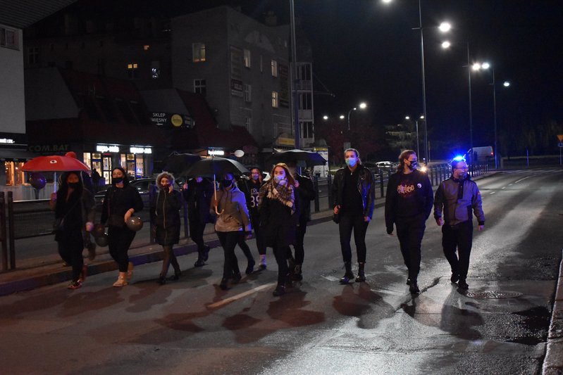 Protestujący chodzili z parasolkami i transparentami wokół ulicy Wyszyńskiego. Co niektórzy na barierkach zostawiali wieszaki. Cichy protest, podobnie jak wszystkie dotychczasowe, obstawiała policja, która na czas marszu zablokowała ulicę Wyszyńskiego.