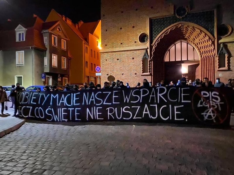 Najpierw przy kolegiacie, a potem w centrum pojawili się panowie z Fan Clubu Pogoni FC Stargard z transparentem "Kobiety macie nasze wsparcie lecz co święte nie ruszajcie".