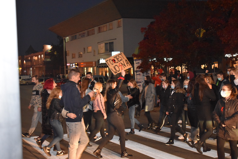 Na zdjęciu: W dzisiejszej demonstracji wzięły udział głównie młode kobiety. Ale nie brakowało towarzyszących im mężczyzn.